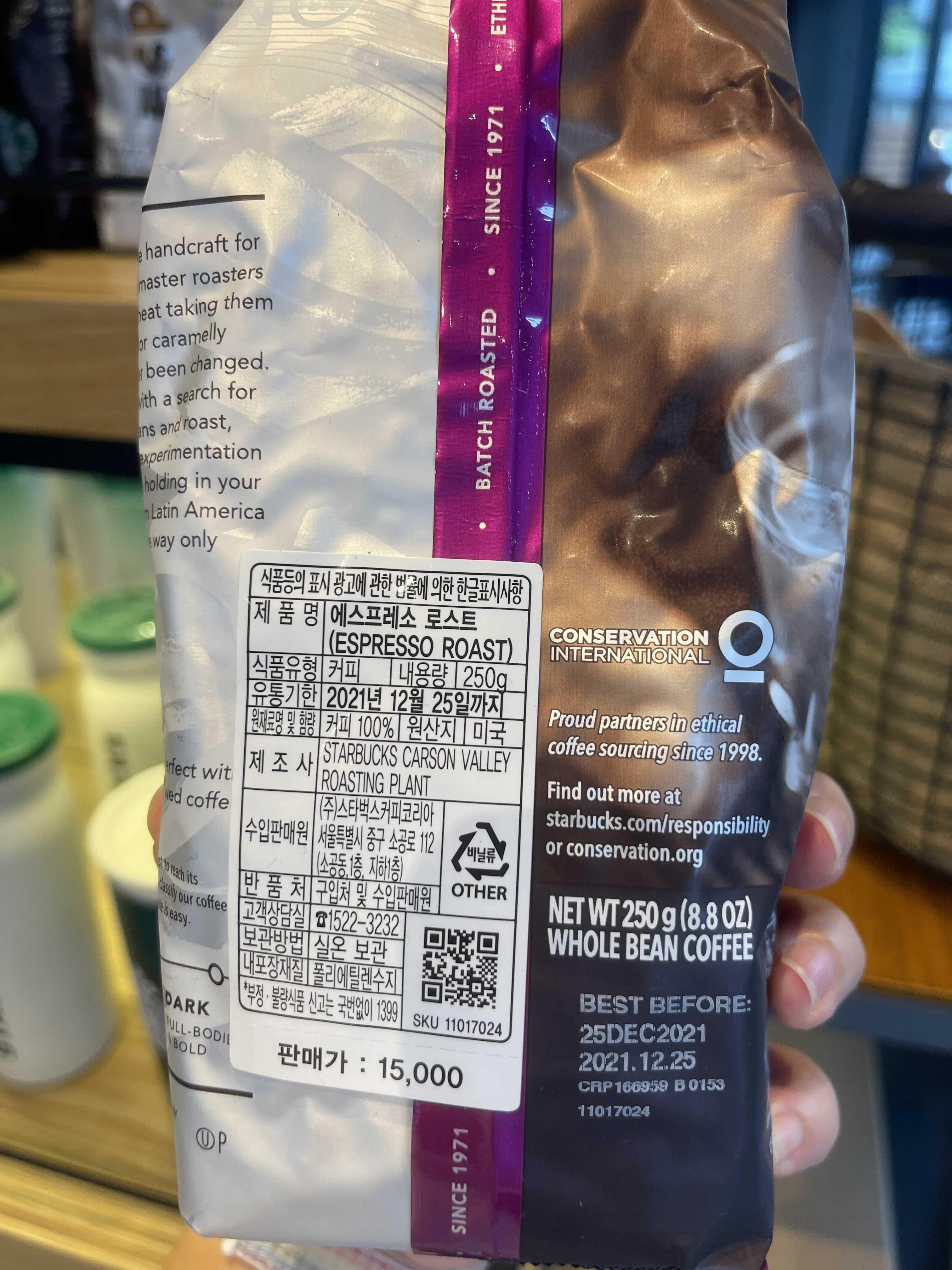 집에 원두가 똑 떨어진날, 스타벅스 DT에서 동생이 사다준 커피 (저는 원래 일리 원두를 먹었습니다. 쿠팡배송 250g 만원정도) 아무튼 동생이 스타벅스 직원의 추천으로 샀다고 한 커피 STARBUCKS ESPR