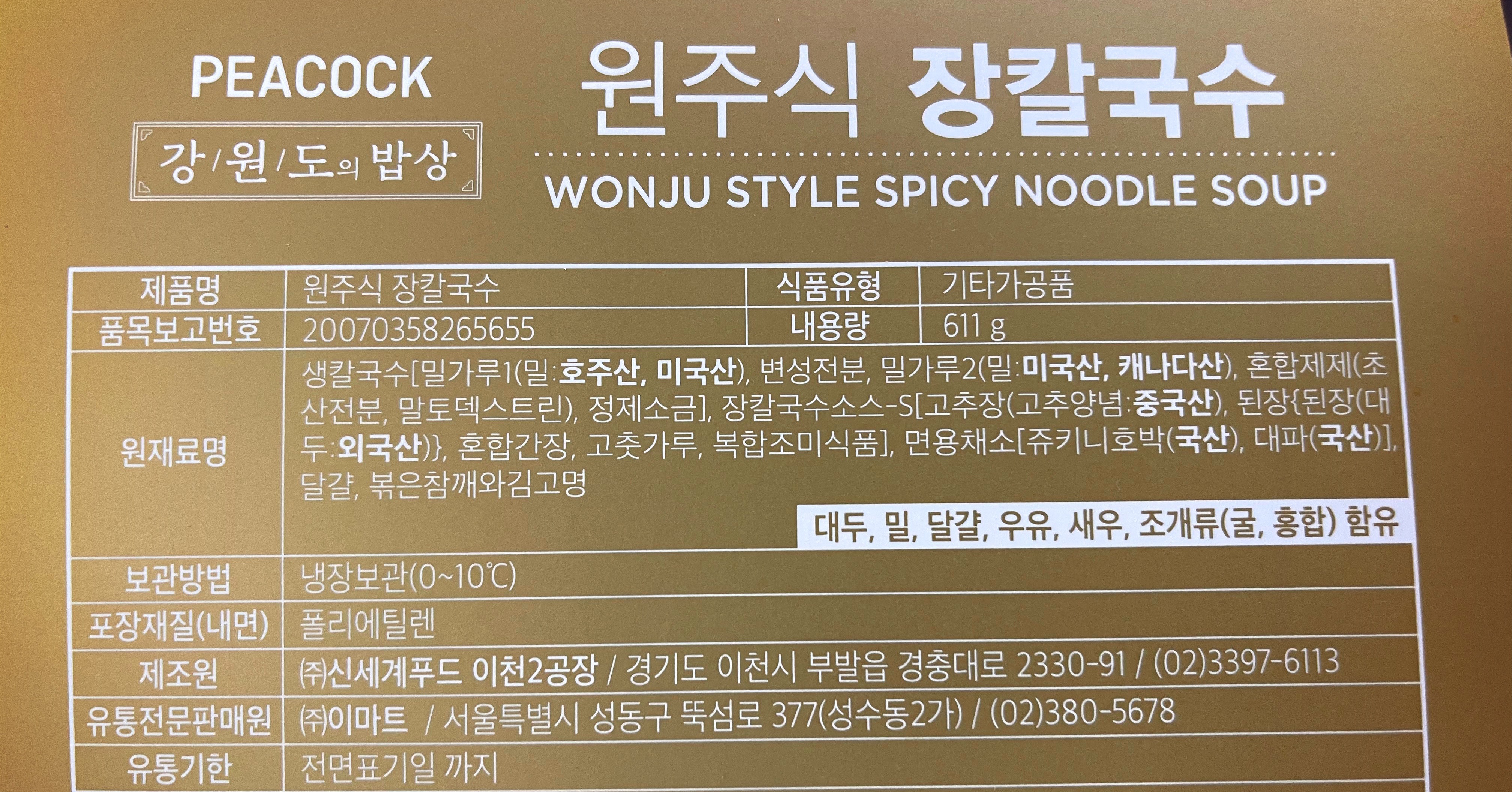 이마트 PEACOCK 원주식 장칼국수 주의사항