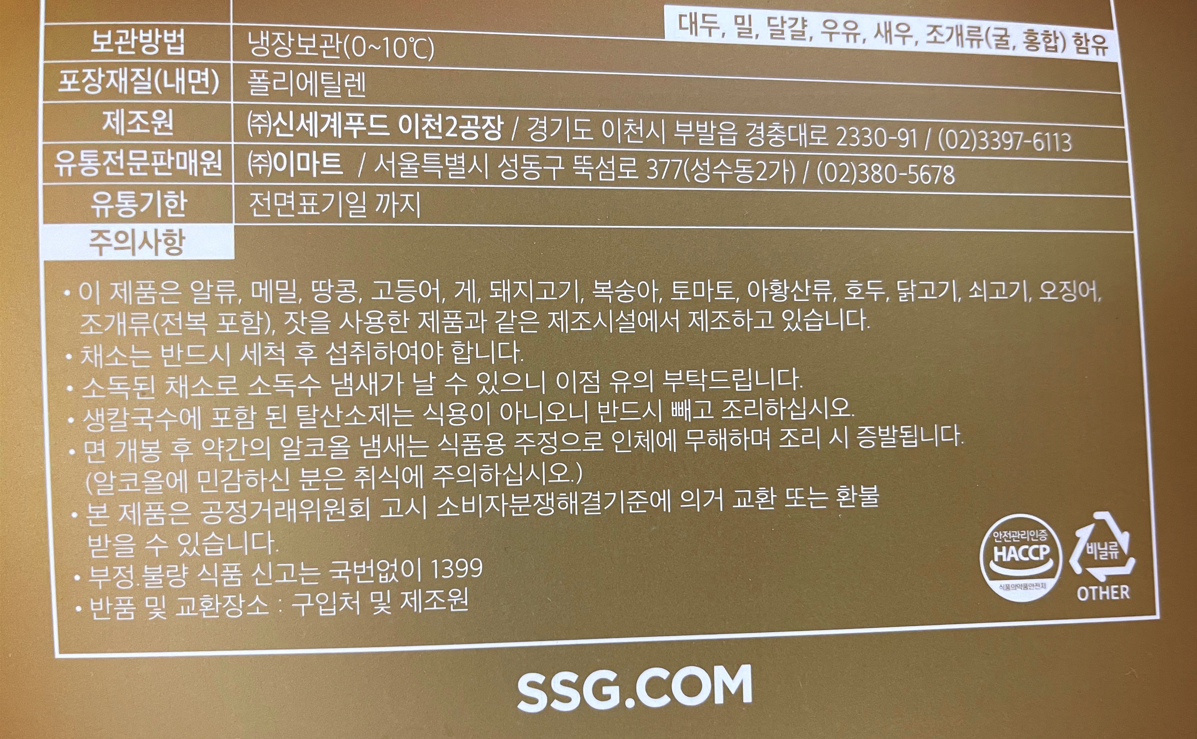 제조원 (주)신세계푸드: 경기도 이천시 부발읍 경충대로 2330-91 ( 02-3397-6113)