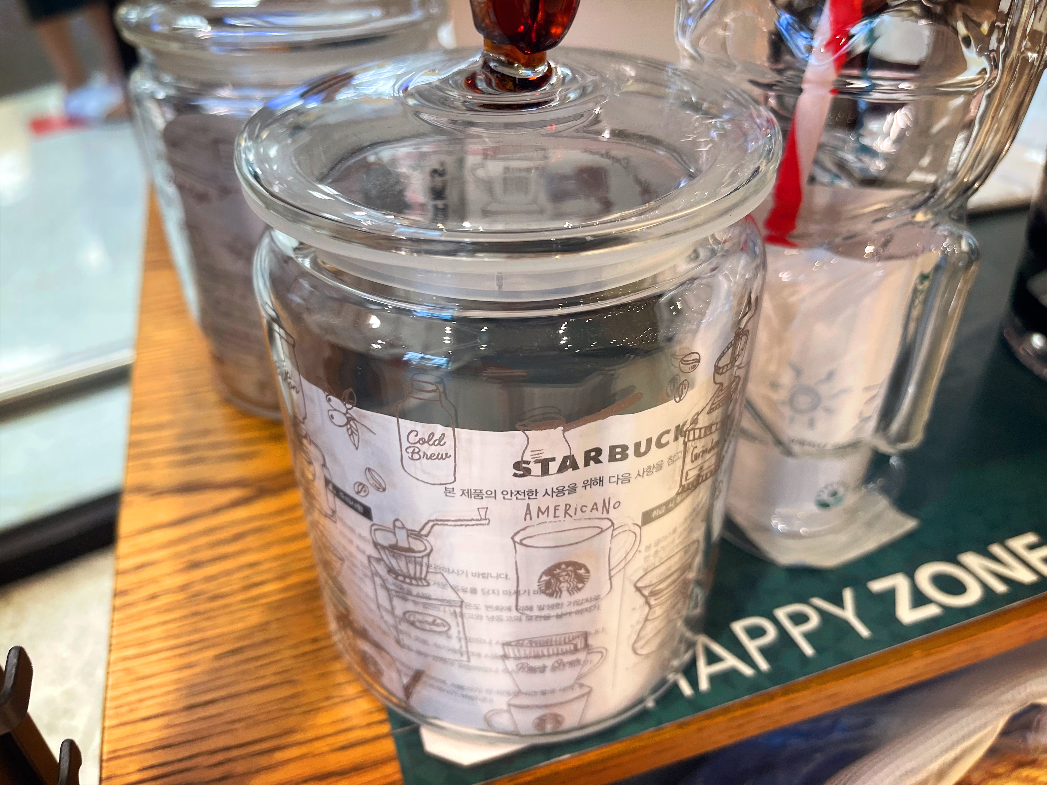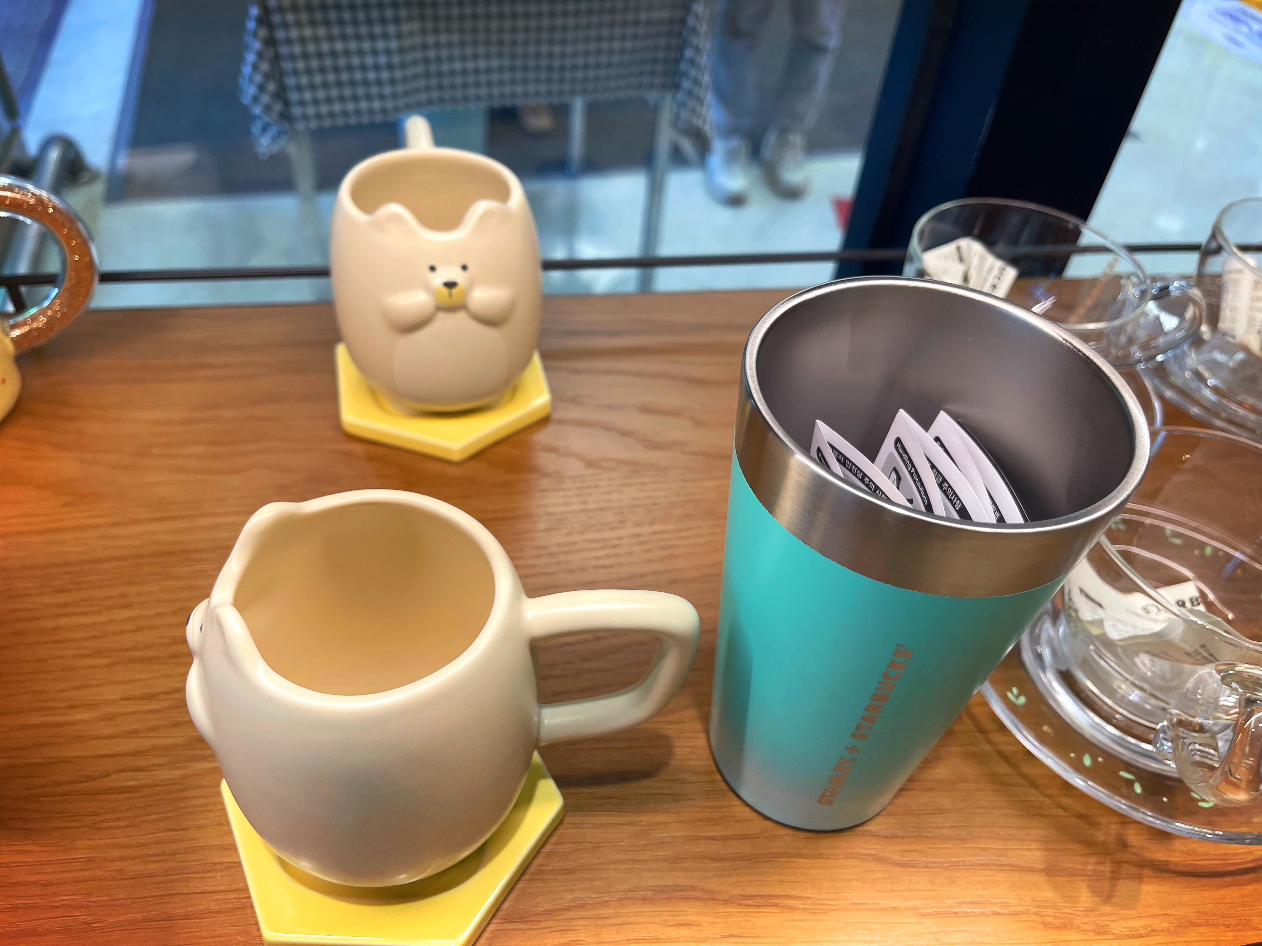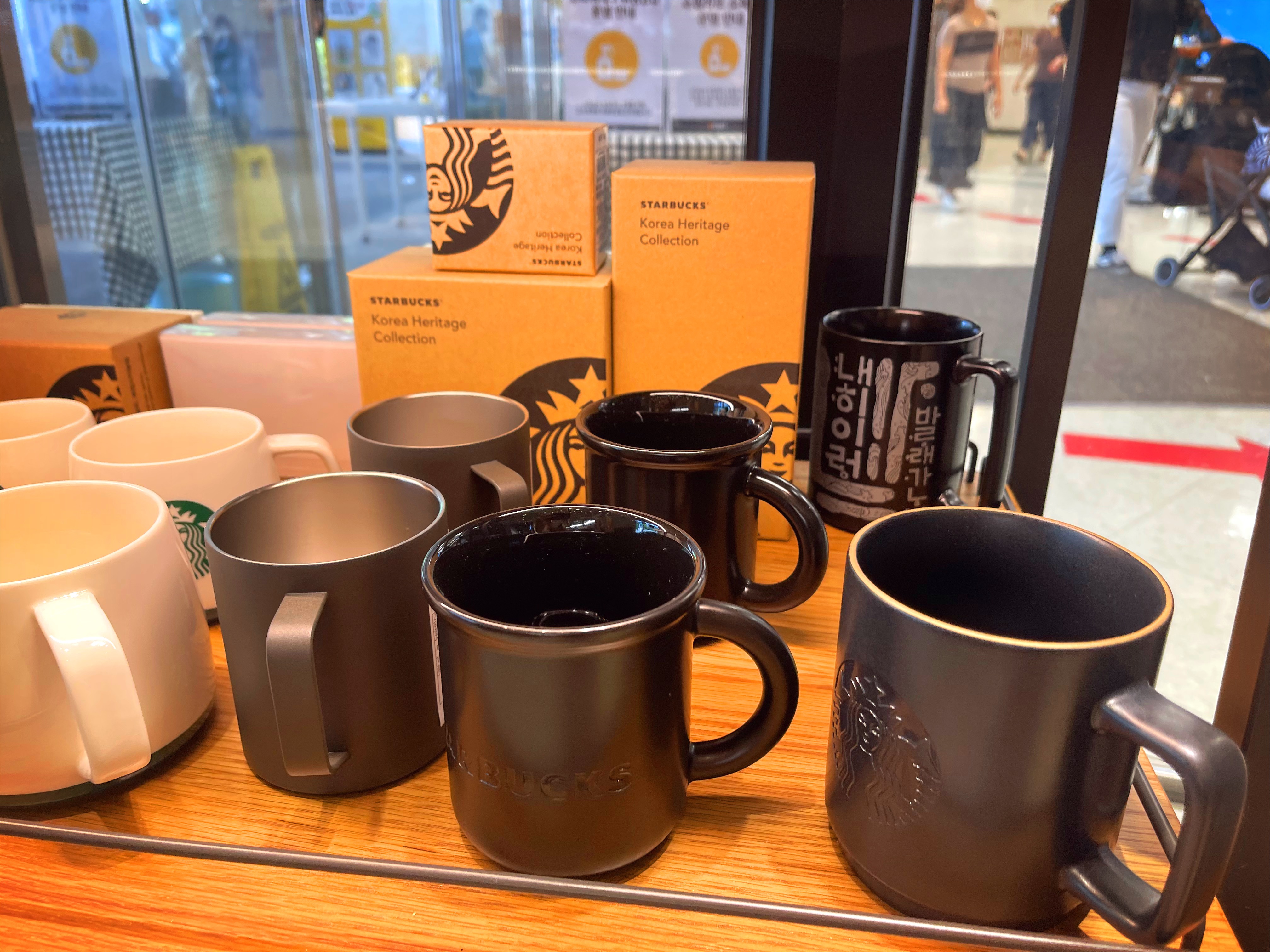 스타벅스의 다양한 텀블러와 컵들을 구경했습니다.