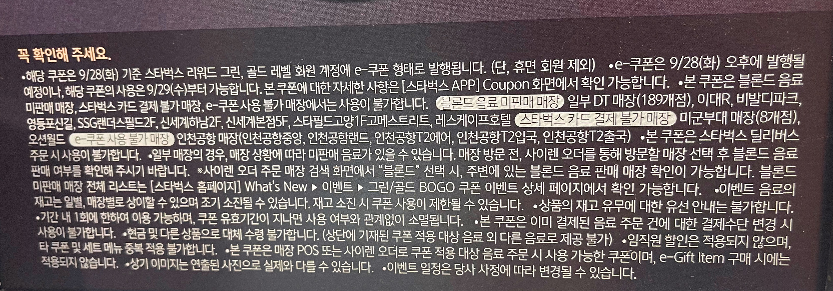 4. 해당쿠폰은 블론드음료 미판매 매장 스타벅스카드 결제 불가매장 e쿠폰 사용 불가매장에서는 사용 불가
