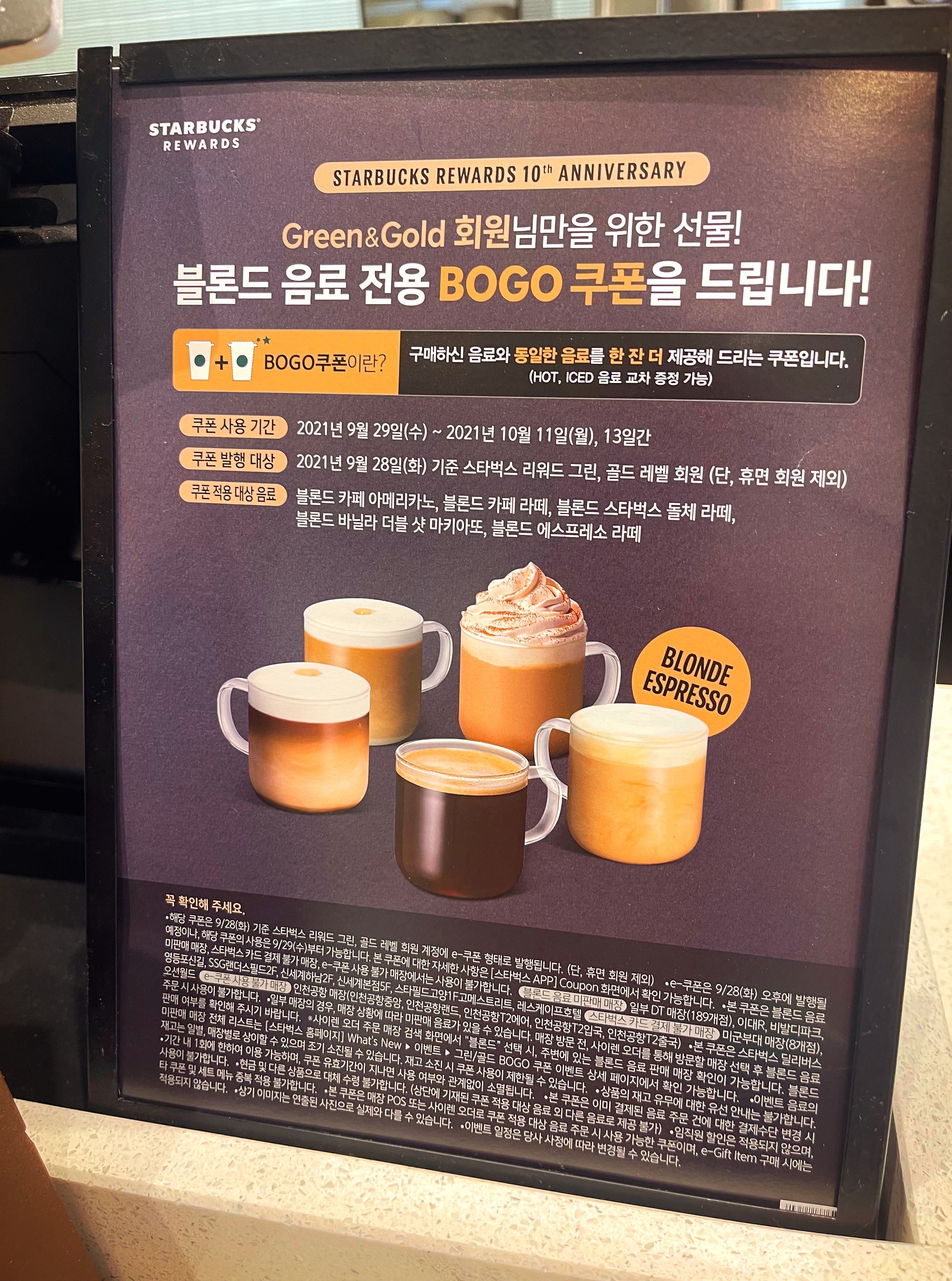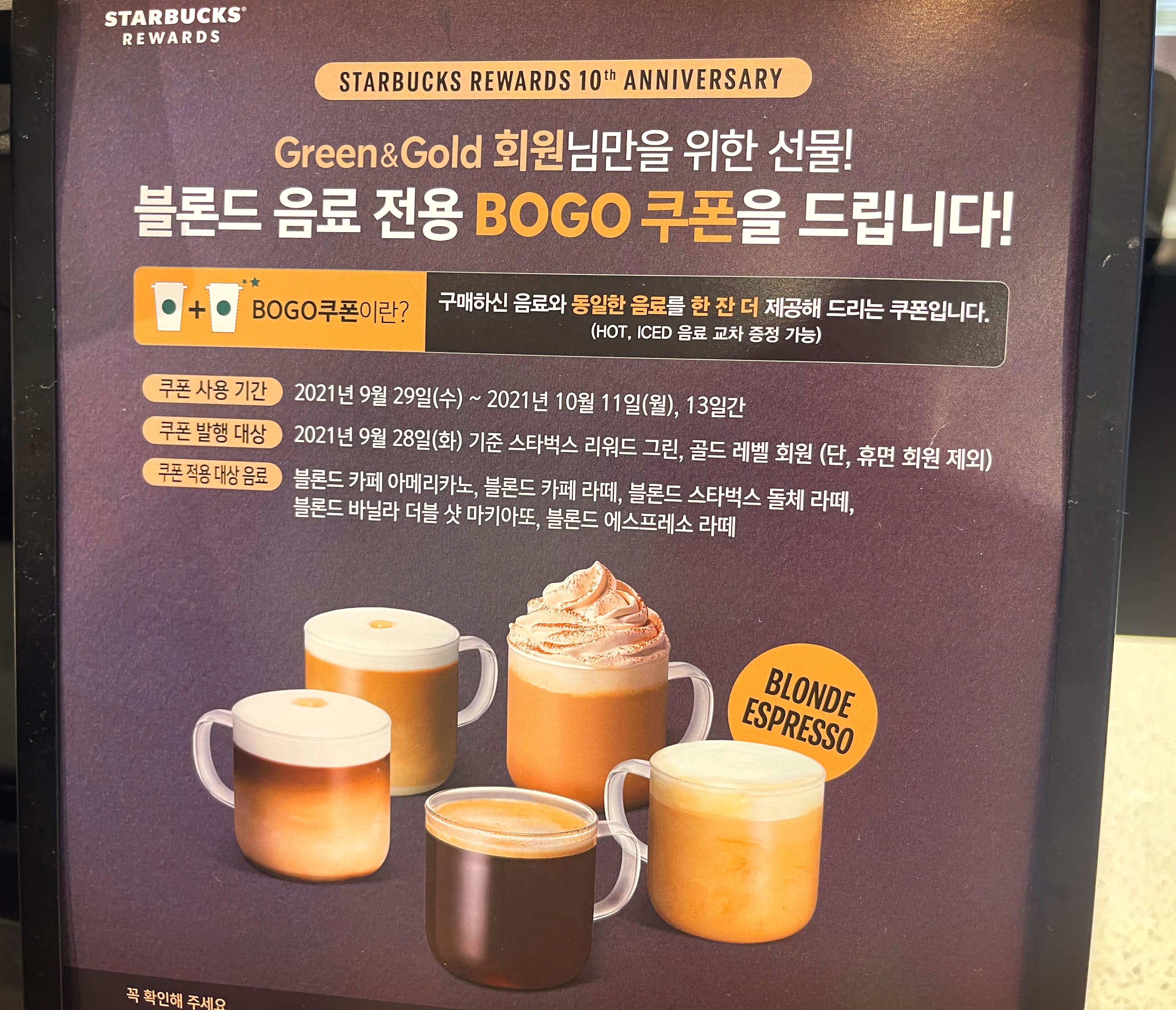 스타벅스 어플내에 BOGO쿠폰이 들어와있더라구요