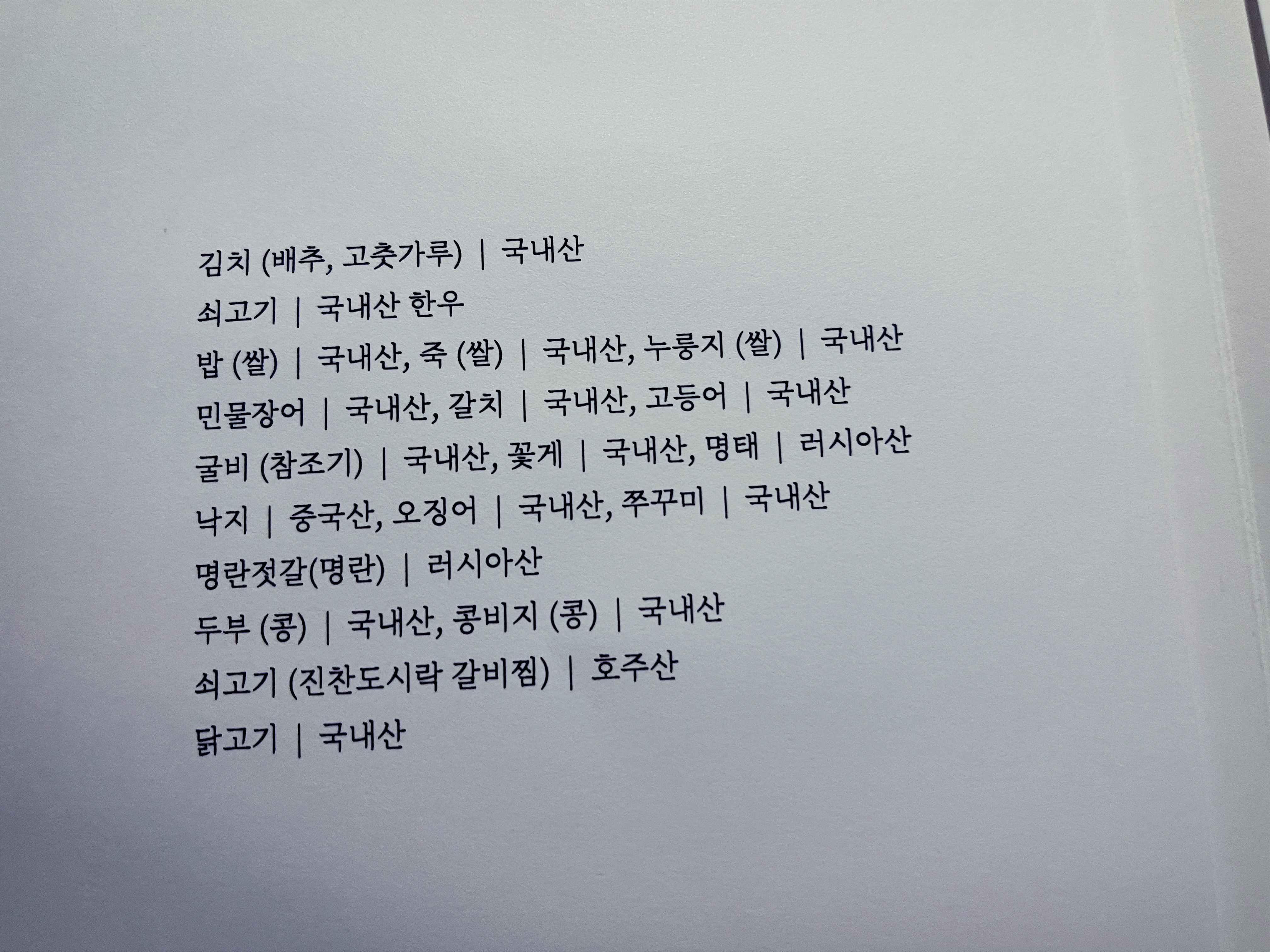 부산 롯데호텔 한식당 무궁화 원산지 표기