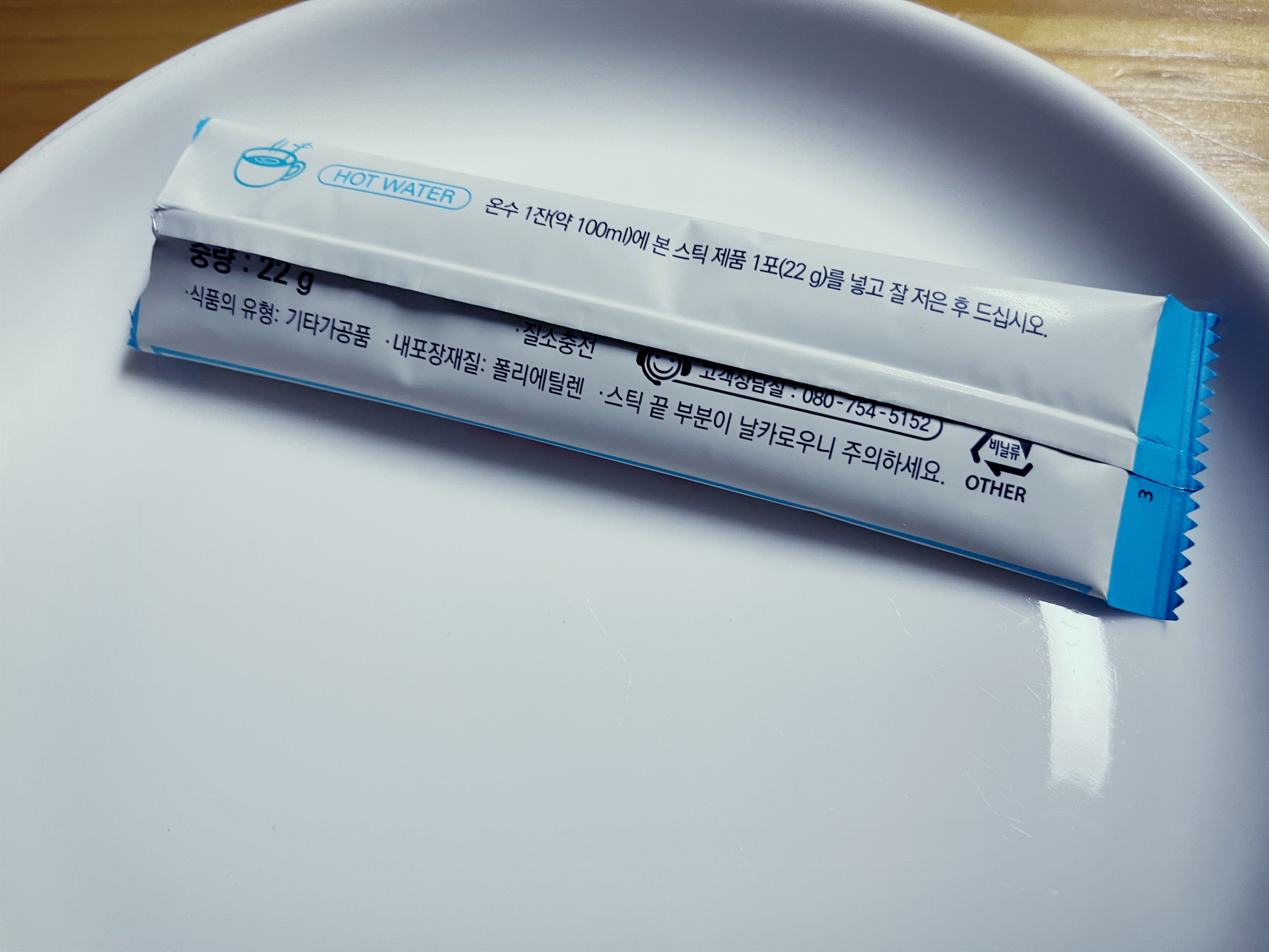 맛있게 먹는법은 온수1잔 100ml에 본스틱제품1포를 넣고 잘 저은후 드세요