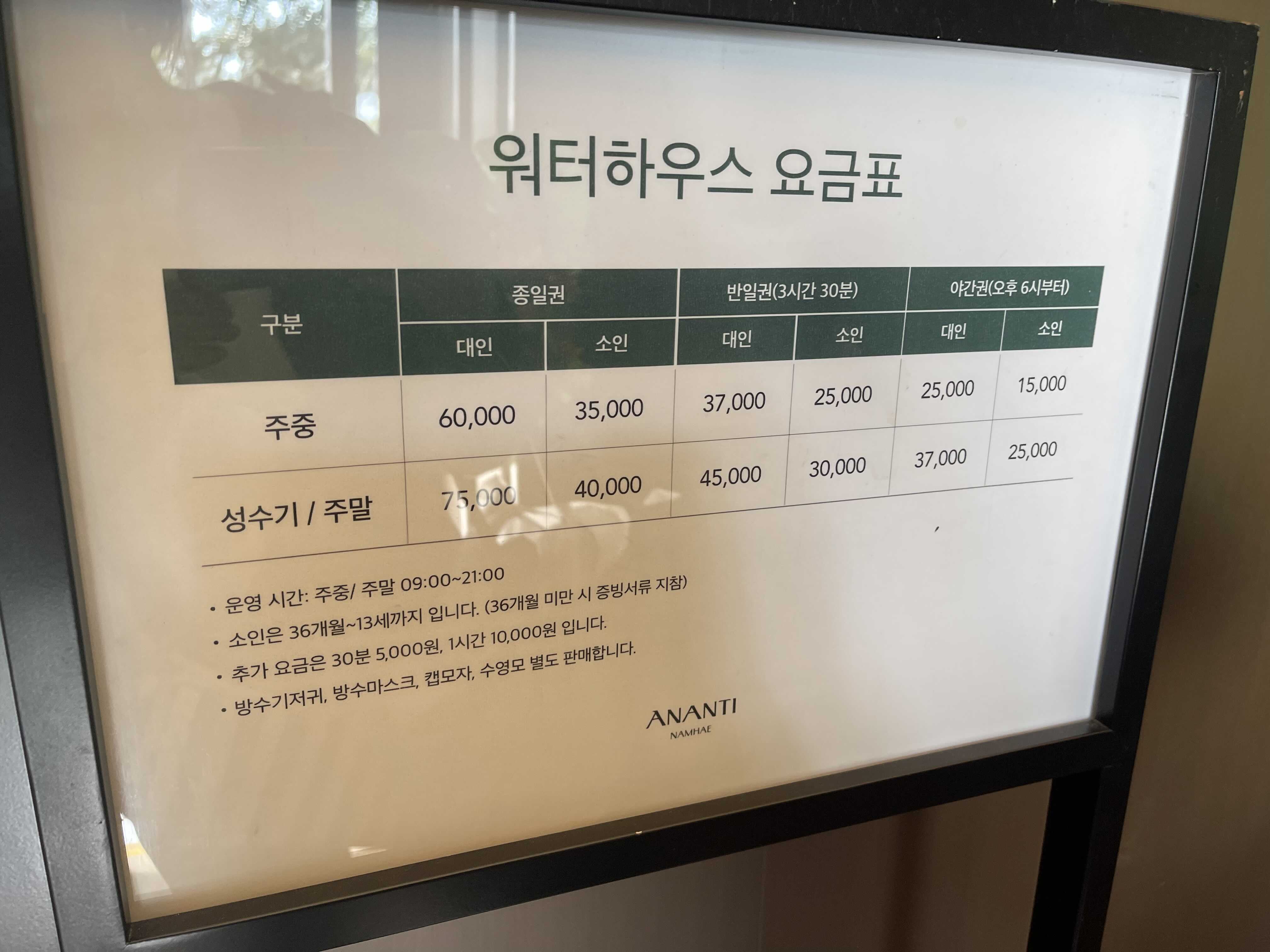 그런데 여름에 남해아난티에 수영장 워터하우스 오픈했습니다.