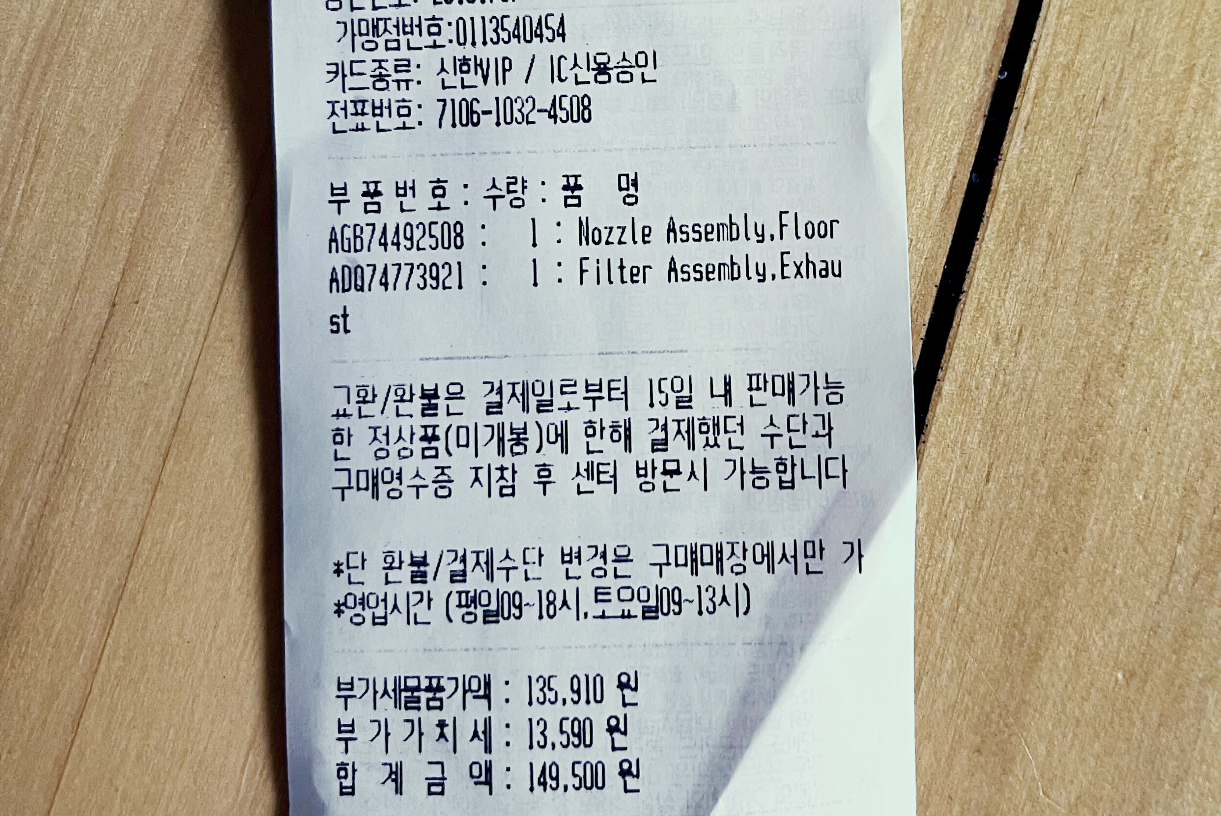 예약한 청소기헤드 구매하러 왔다고 했더니