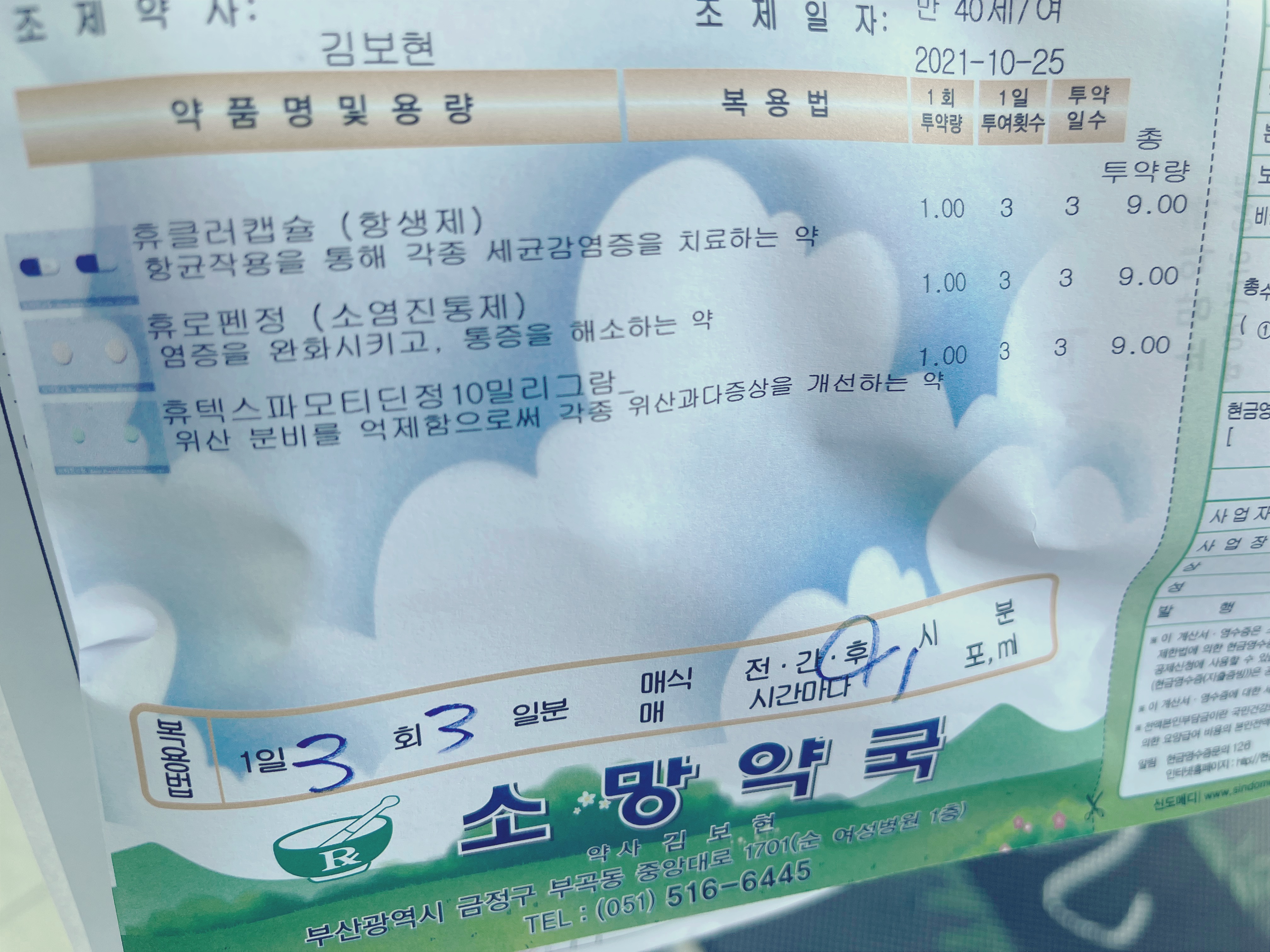 화상 관련 처방 3일치 약이 나왔습니다.