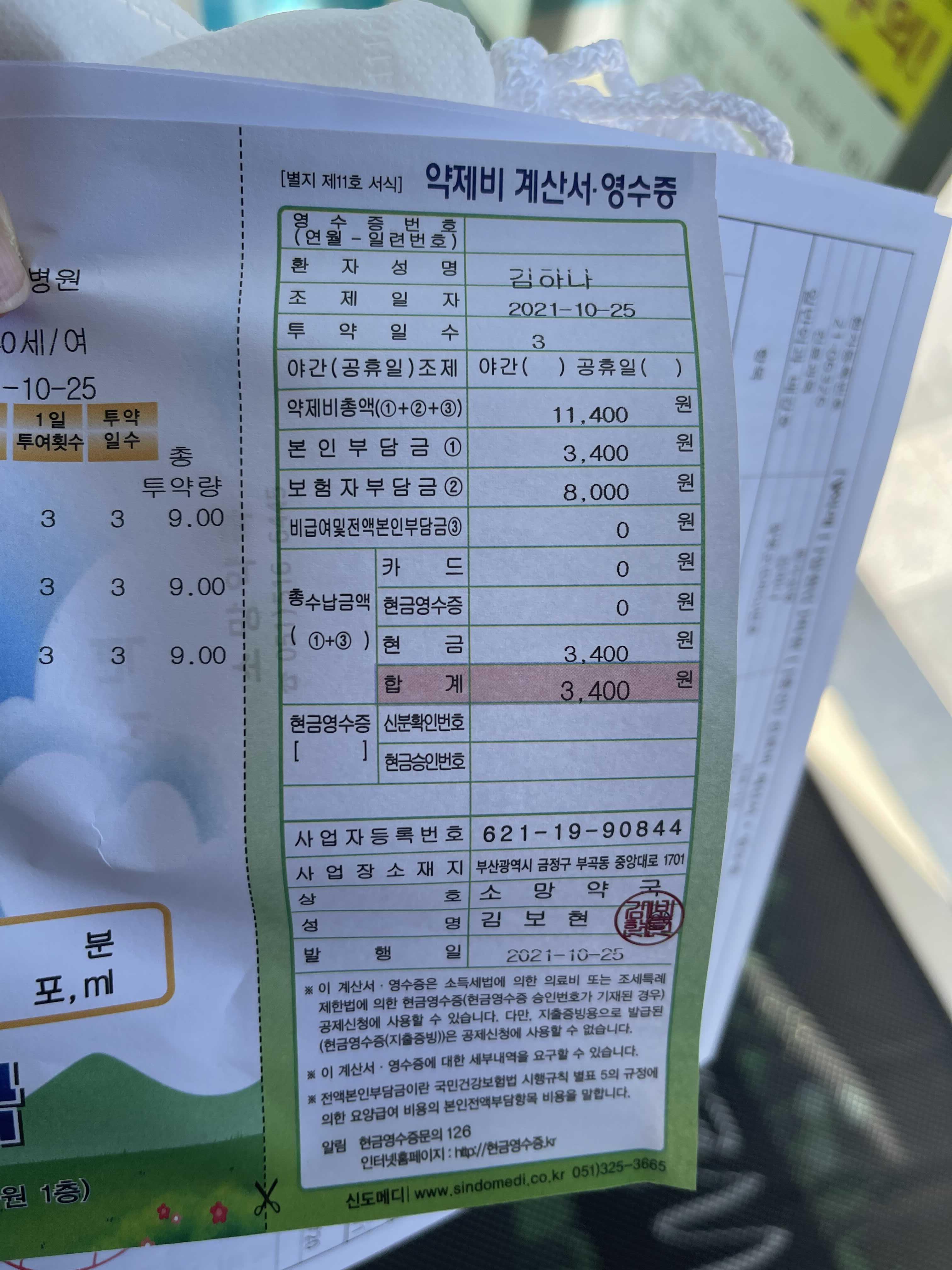 약값 3400원나왔습니다