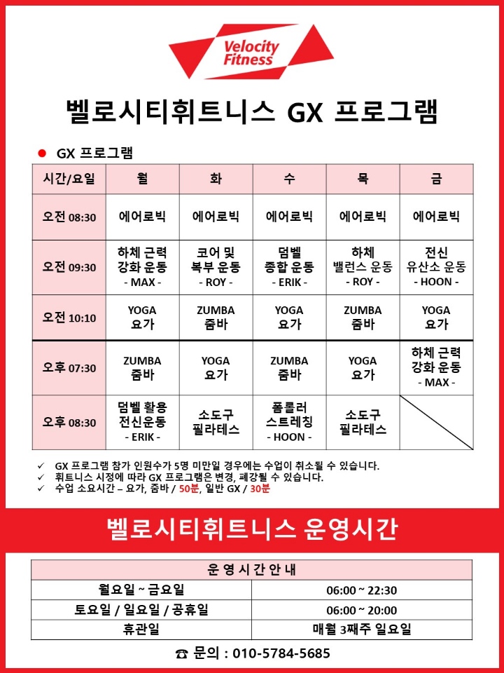 ♥️GX 프로그램 참가인원 5명 미만시 수업취소될수..