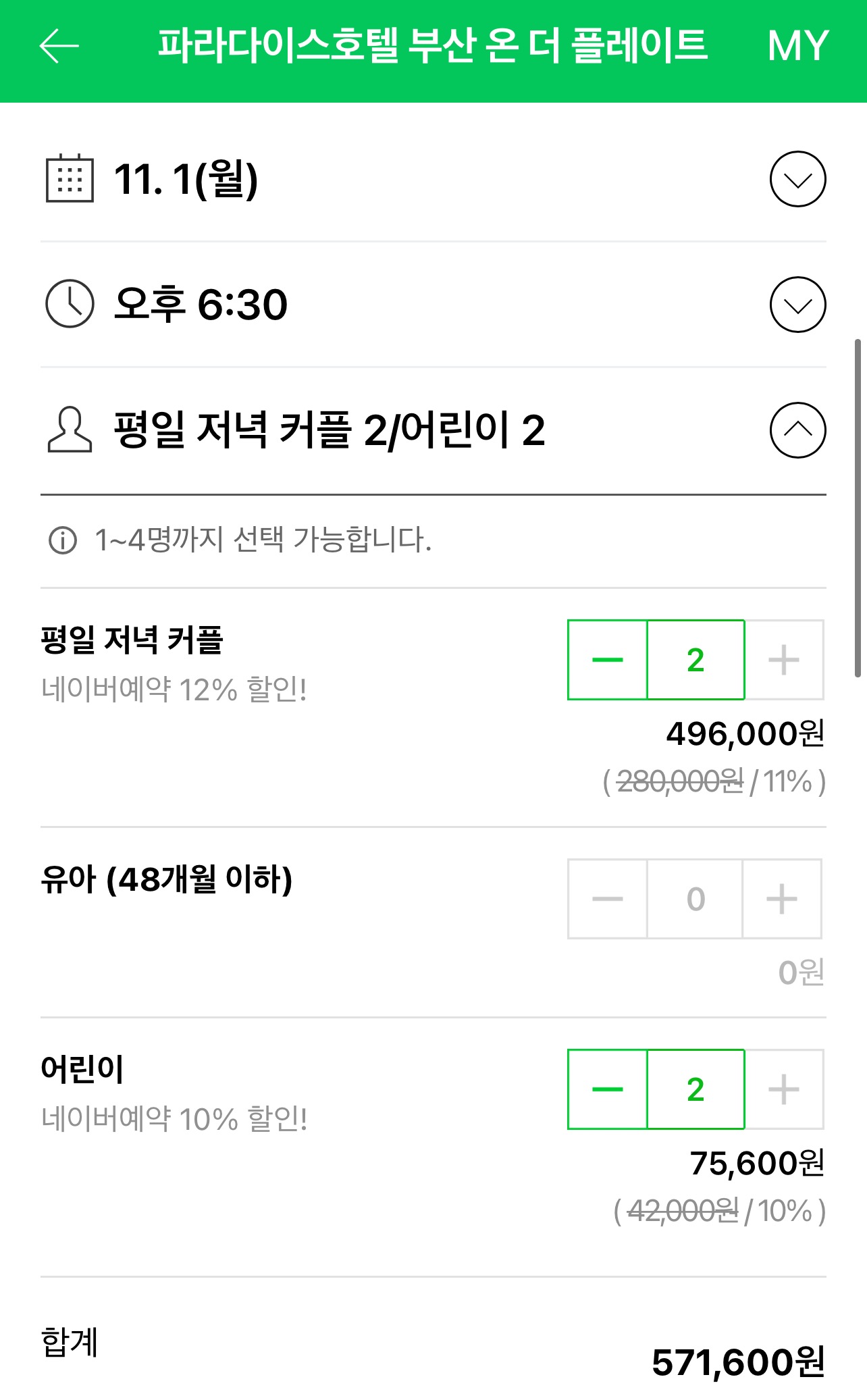 가격대비해서 음식과 서비스가 좋습니다. 네이버 예약할인 15~20%