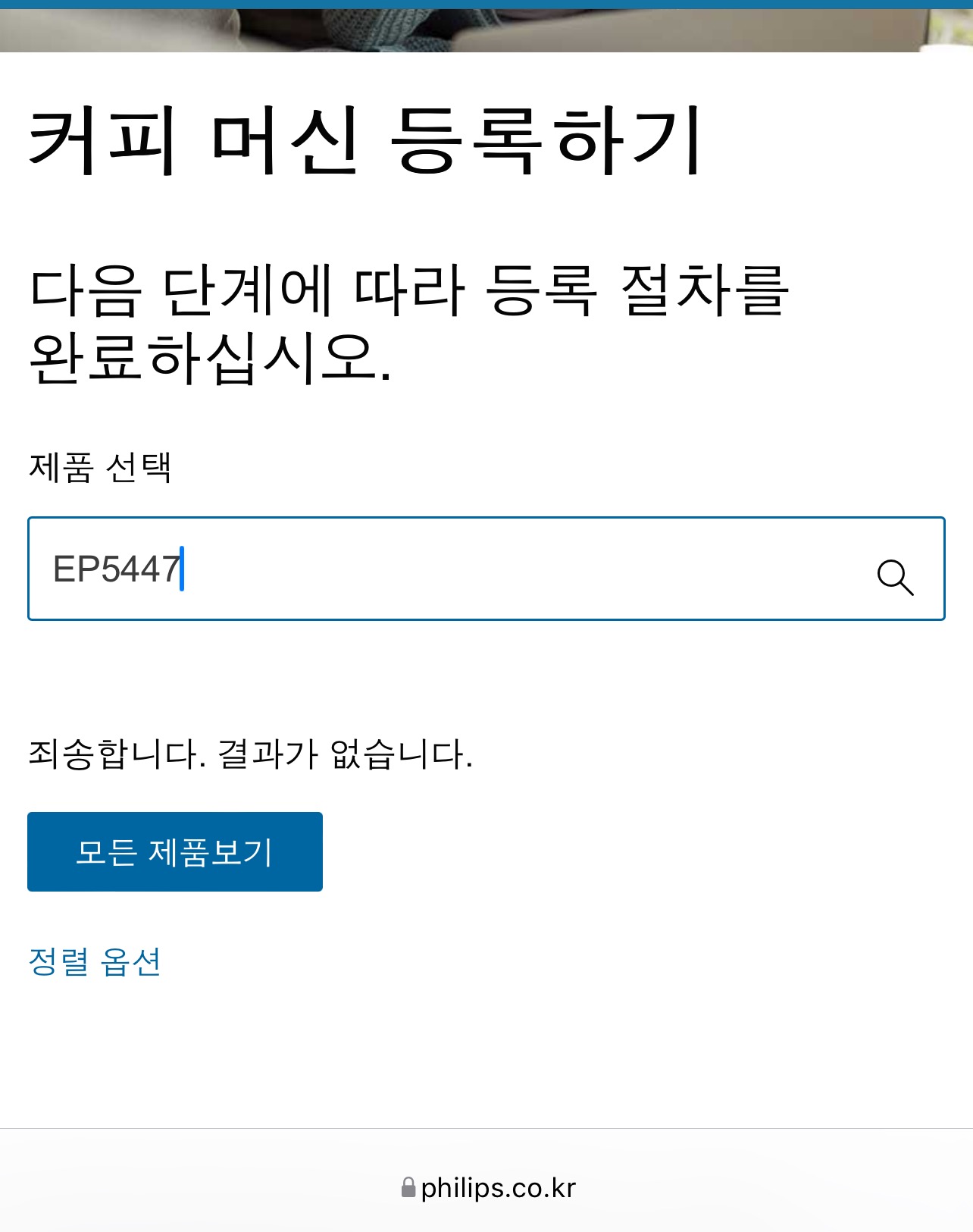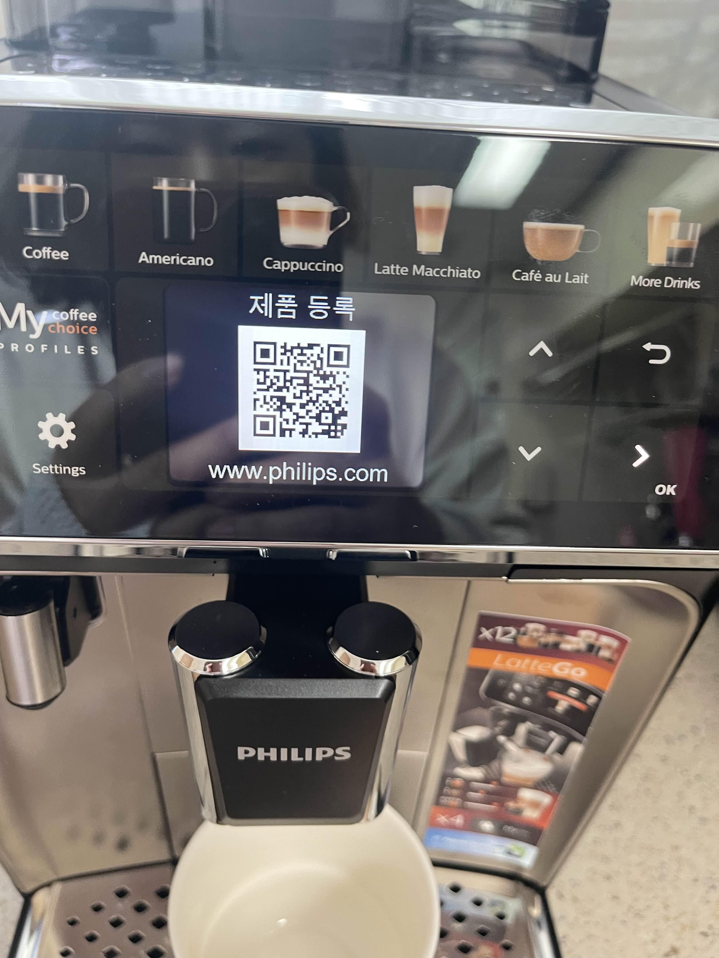 필립스 코리아 홈페이지에 라떼고 5447/93 제품 등록하려 했으나,