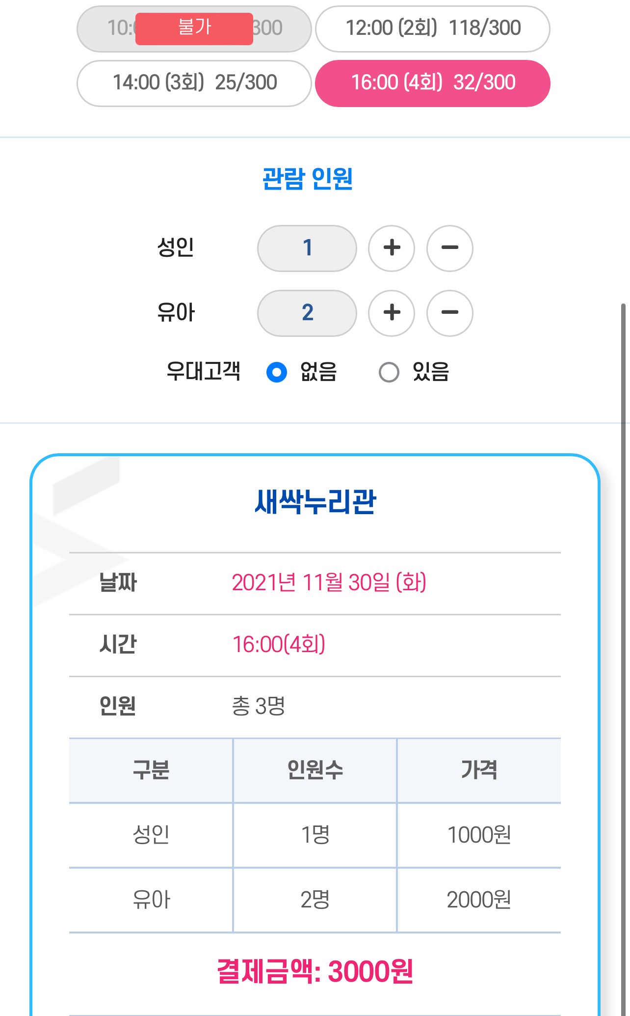 초중고생이 입장이 안되니 자녀가 두명 이상이신분 이점 꼭 확인하시고 예매하십시요