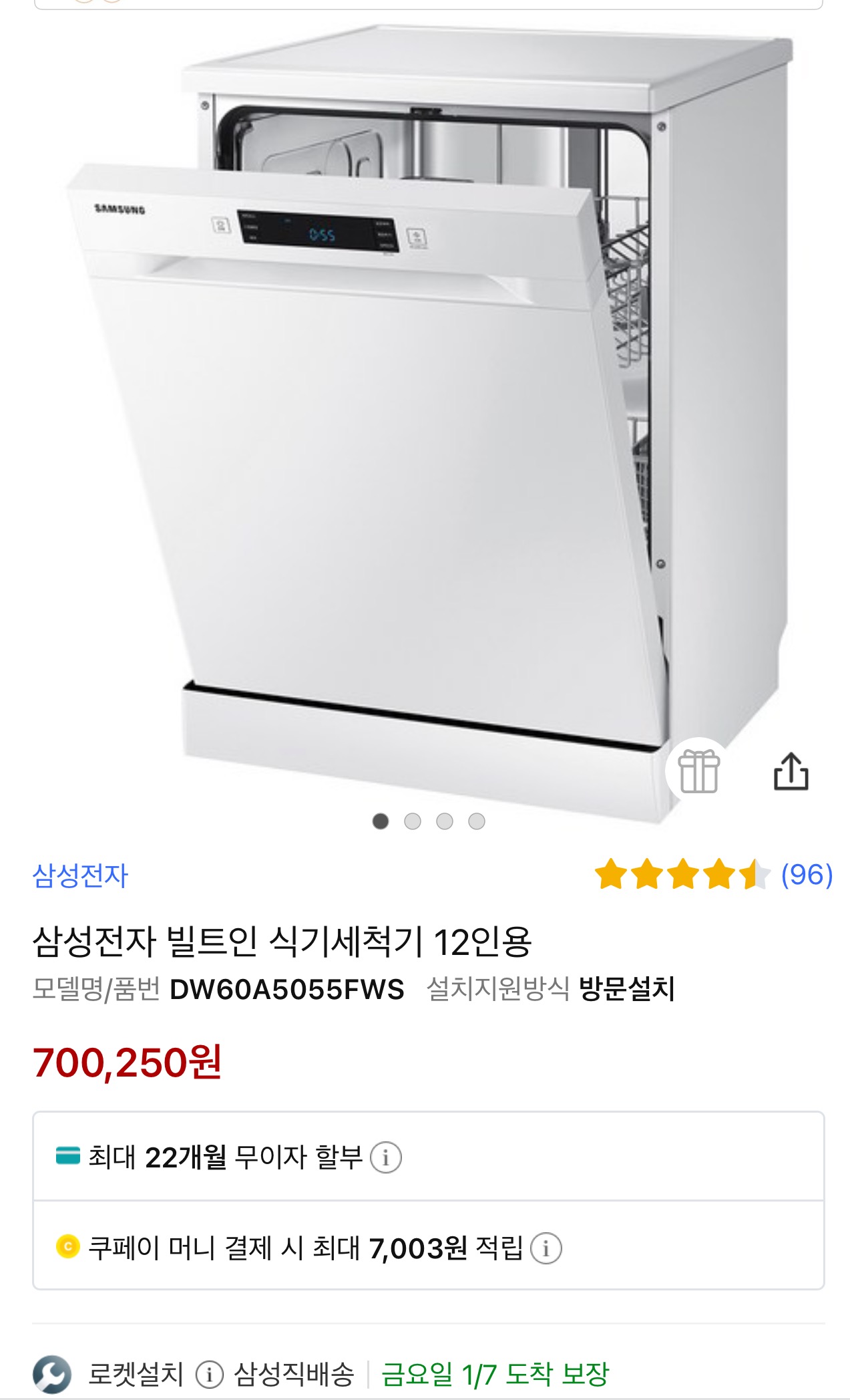 프리스탠딩모델은 상품번호 #641561 (DFB22MA)로 구매가능
