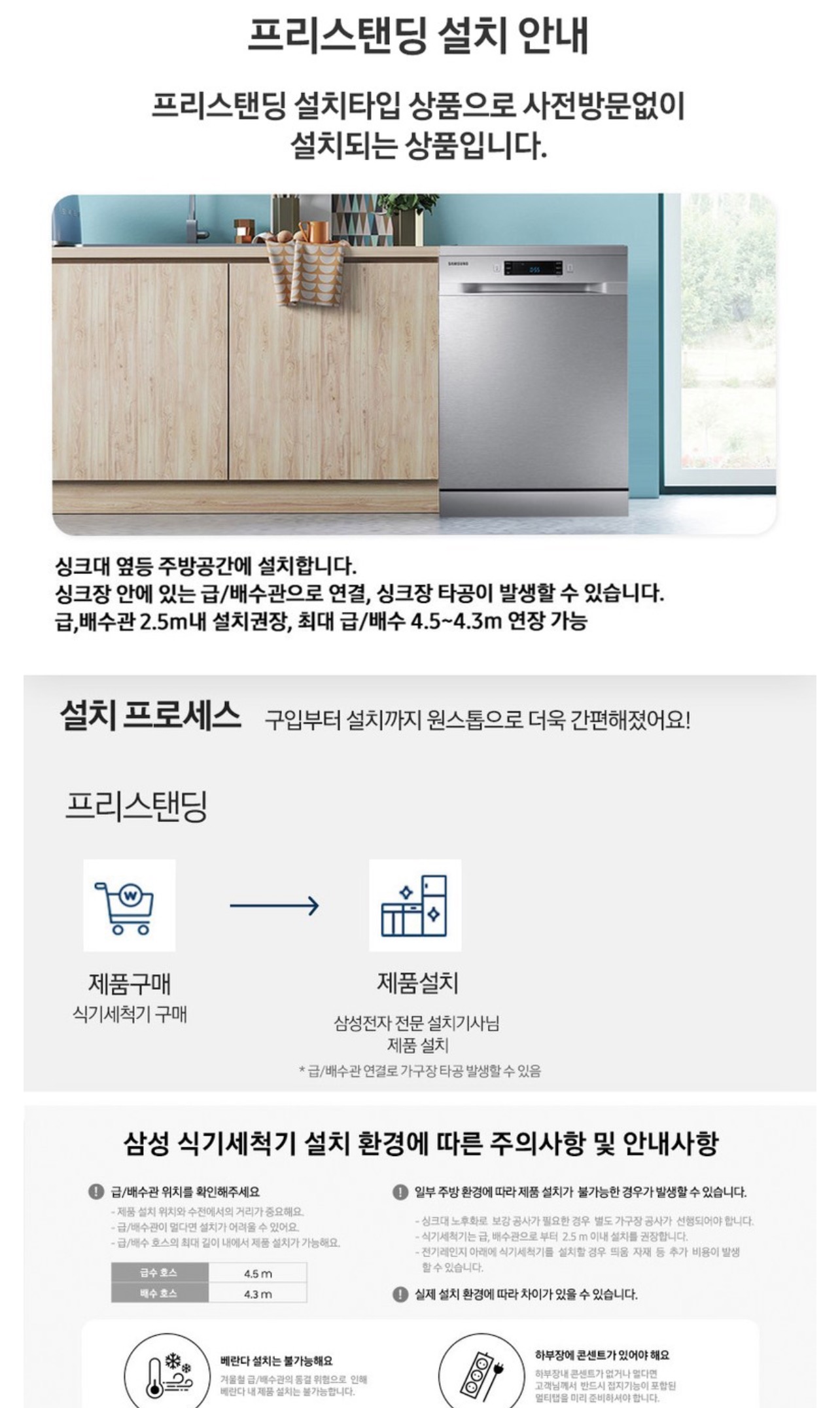 프리스탠딩시 설치환경에 따라 추가비용 발생