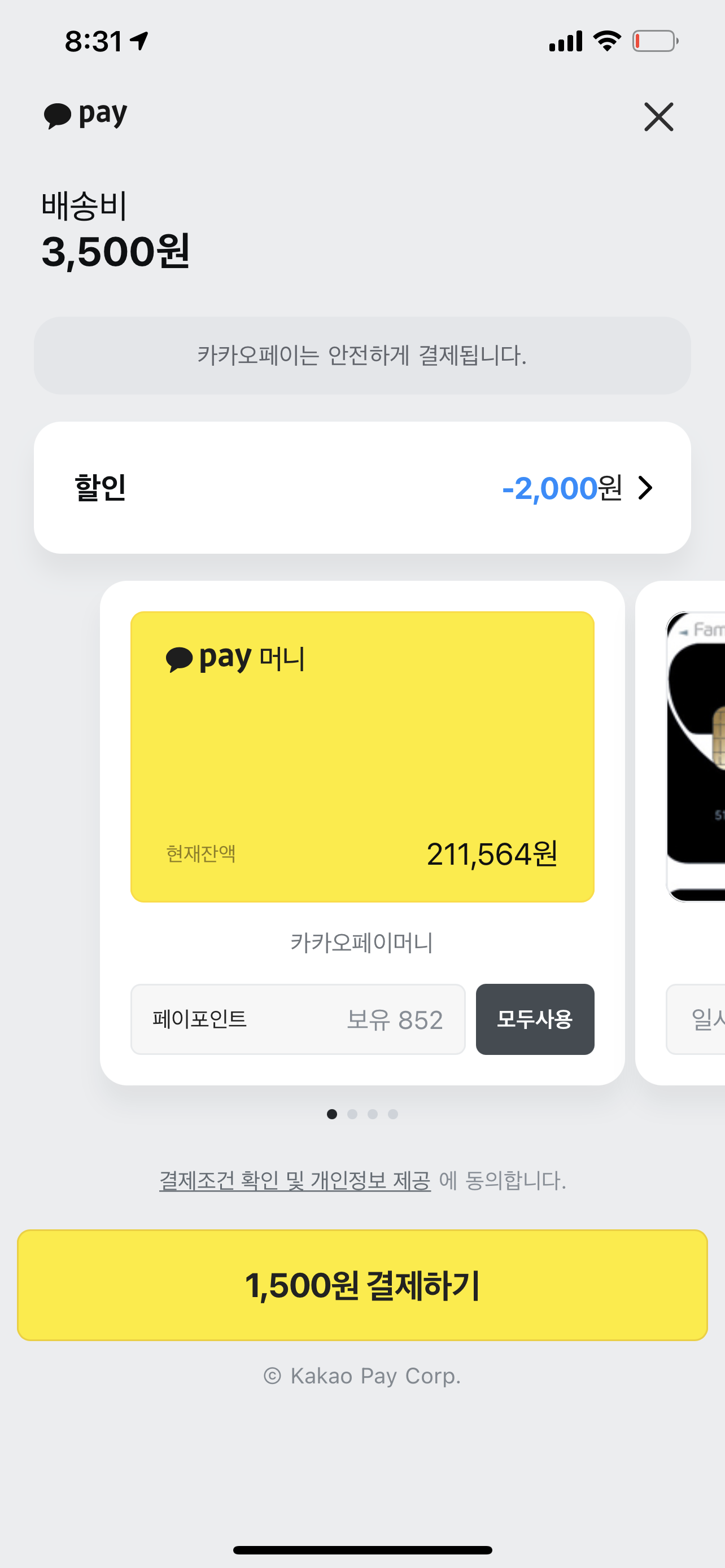 3500원 인데 2천원 할인받아서 1500원에 보냈어요