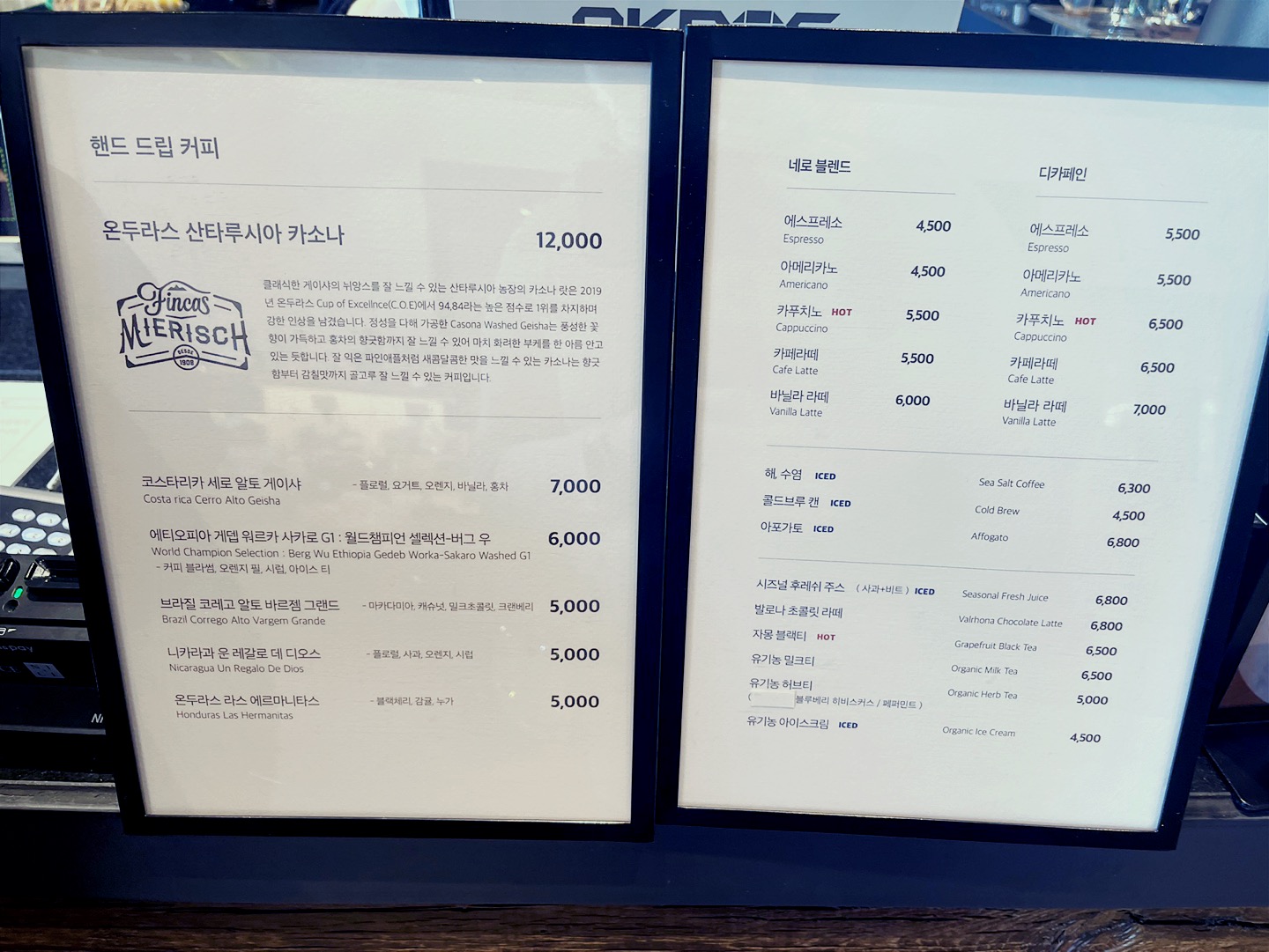 엄마는 연유크림 깜빠뉴와(5300원) 해수염커피(6300원)