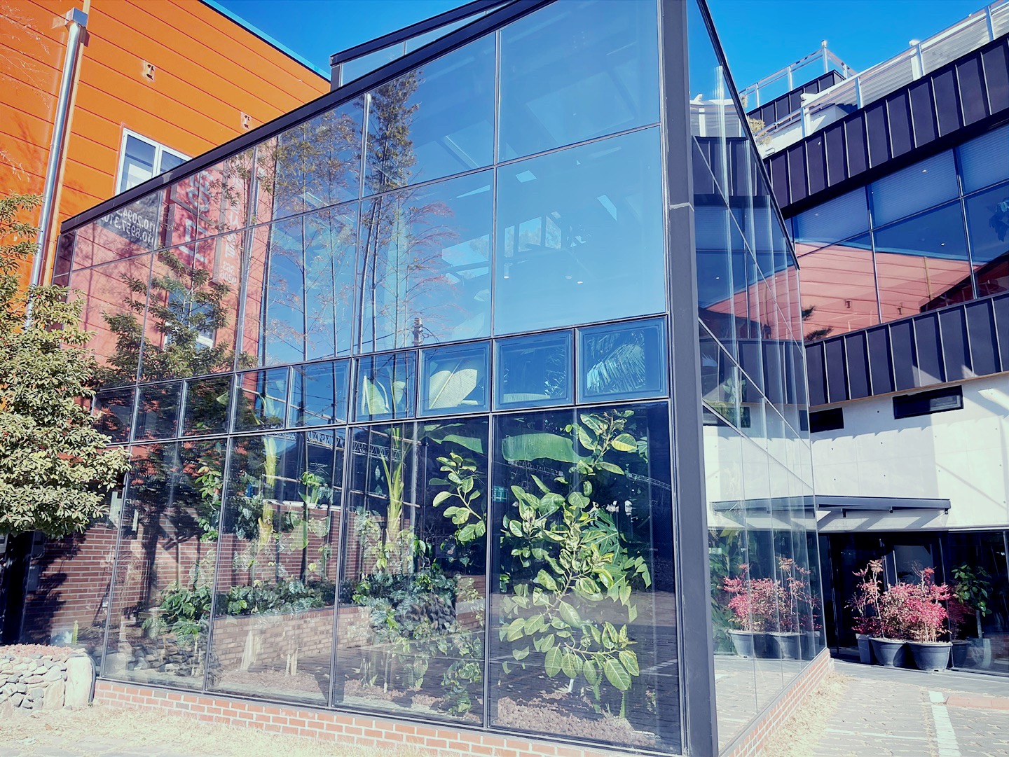 큰 유리창들로 들어오는 햇볕으로 안쪽이 따뜻하면서도 흙냄새