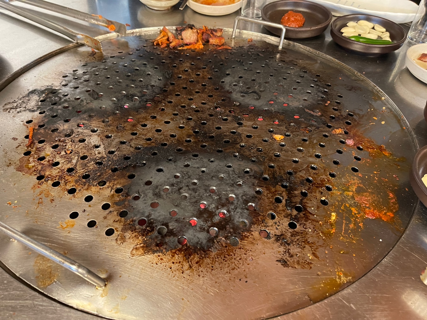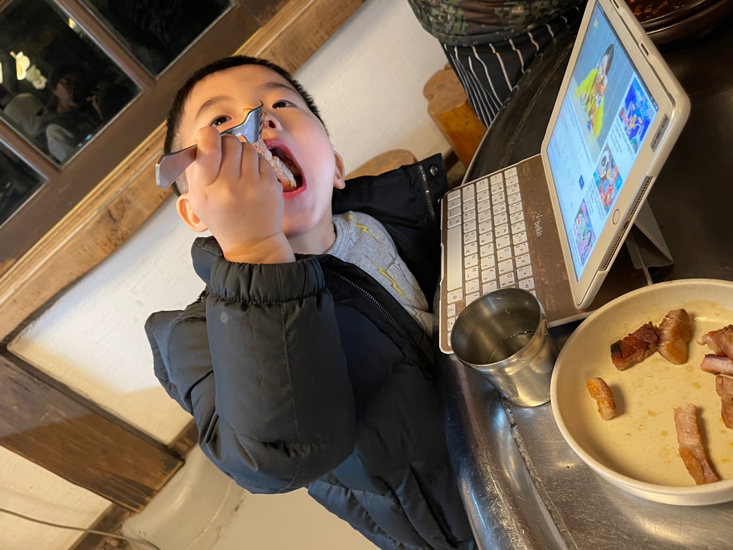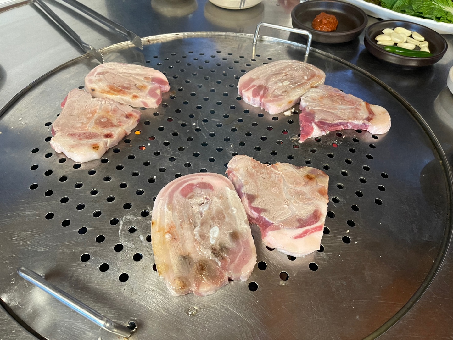 이미 피워진 숯불에 불판 바로 올려서 고기 구워 주십니다. 사실 가끔 혼자 이렇게 부리를 하면 돈은 많이 쓰지만, 가장 사랑하는 아이들과 좋은거 먹어서 좋습니다. 형편이 넉넉해진 느낌, 저는 이런데서 느낍니다. 마트에서 장볼때 고기 훅 지르지만, 다른거 아끼지 뭐 이러면서 아이 구워서 먹입니다. 그리고 이런 식당올때오늘 엄마가 크게 쏜다 라는 느낌으로 고맙다고 하지도 않는 아이들에게 맛있게 잘 먹입니다. 그집 너무 비싸더라 라고 하셨지만, 어머님은 저는 이왕 나온거 배터지게… 쌈까지 다먹은 자랑스러운 엄마 (세아이 엄마해도 되겠다 싶은 나 ㅎㅎ 모성애 뿜뿜)