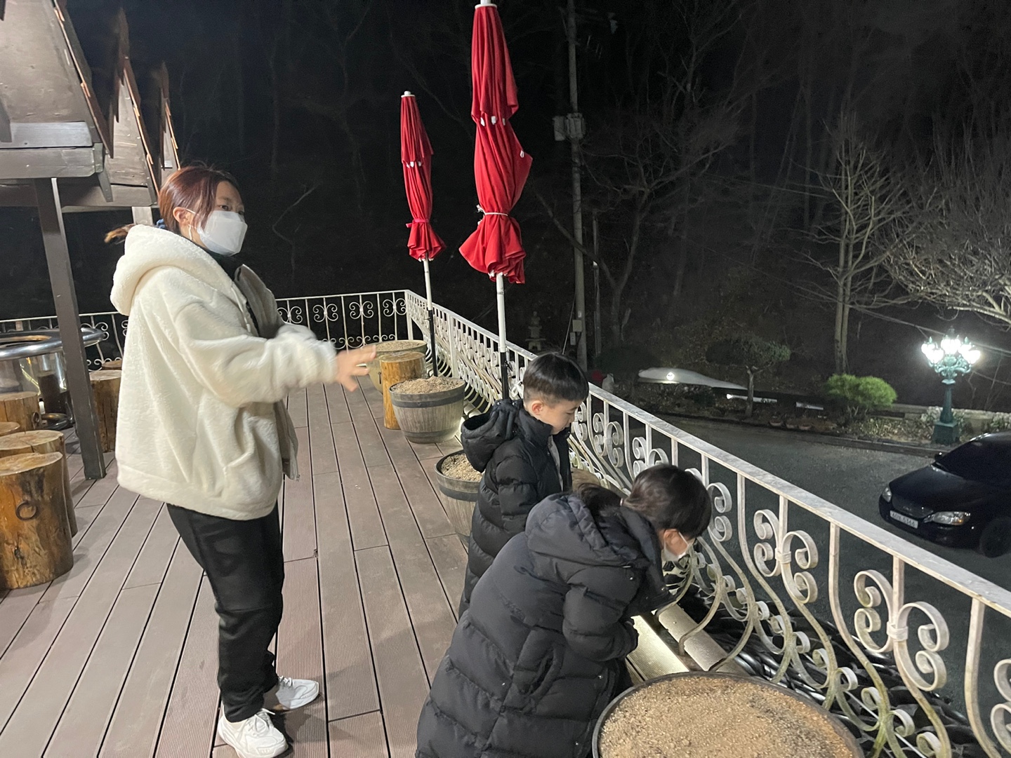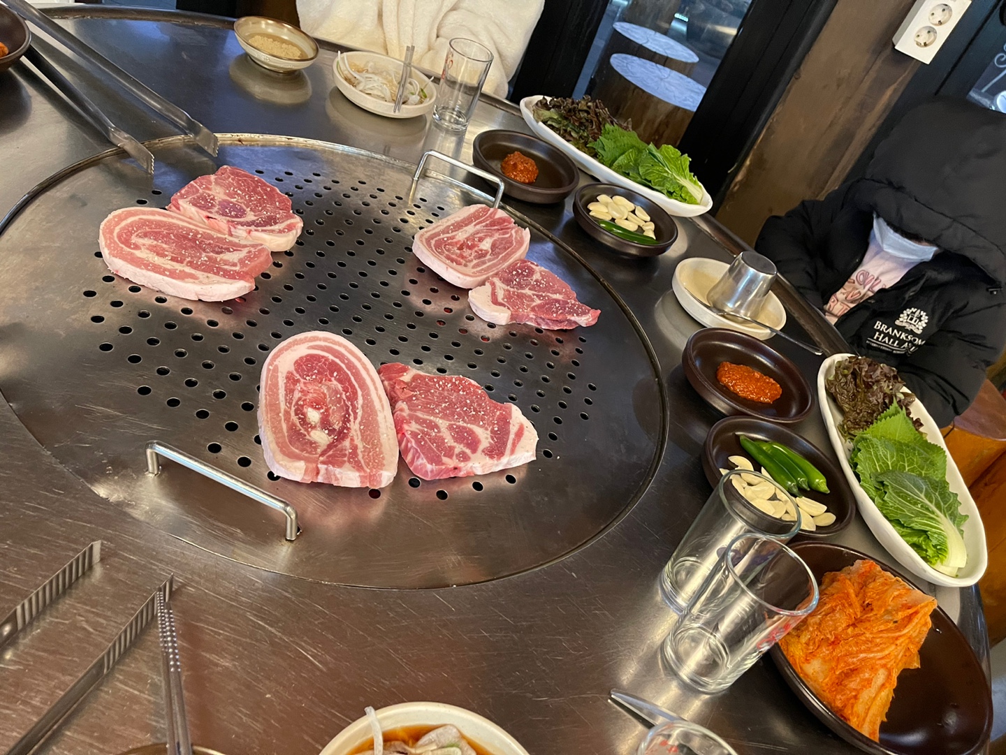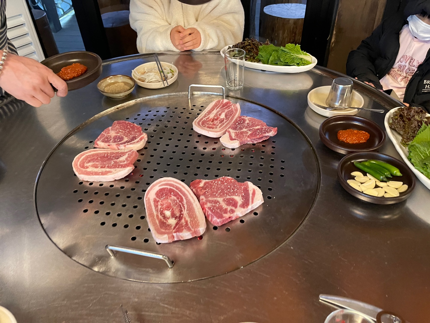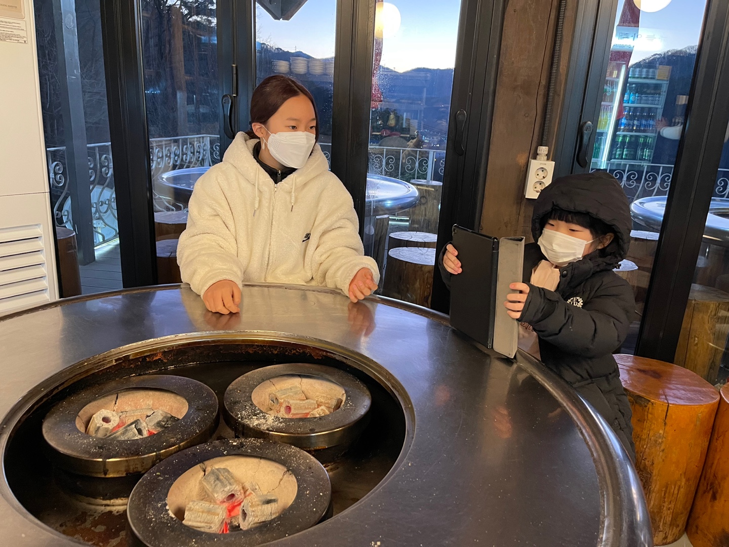 미리 말씀드리는데 이 사진은 식사를 다마치고서야 밖에 나가서 놀겠다는 아이들에게 밖이 얼마나 어두운지 보여줄겸, 또 겨울이라서 테라스에서 야외에서 먹는 고기맛을 즐길 수가 없었습니다. 왜냐하면 너무너무 추워서 ㅜ,ㅜ 밖은 잠궈두셨더라구요. 그래도 아이들이 고기 다 먹고 밖에 나가고 싶다하니까 열어 주시더라구요 ^^ 돈은 좀 비싸지만, 그래도 여기오기를 잘했다 싶게 친절하게 잘 챙겨주시고 고기도 잘구워주시고 아이들 잘먹은것은 또 채워주셔서 참 즐겁게 식사하고 왔습니다 거듭 강조합니다… 비싸지만 비싸지만 비싸지만 잘왔다 ^^