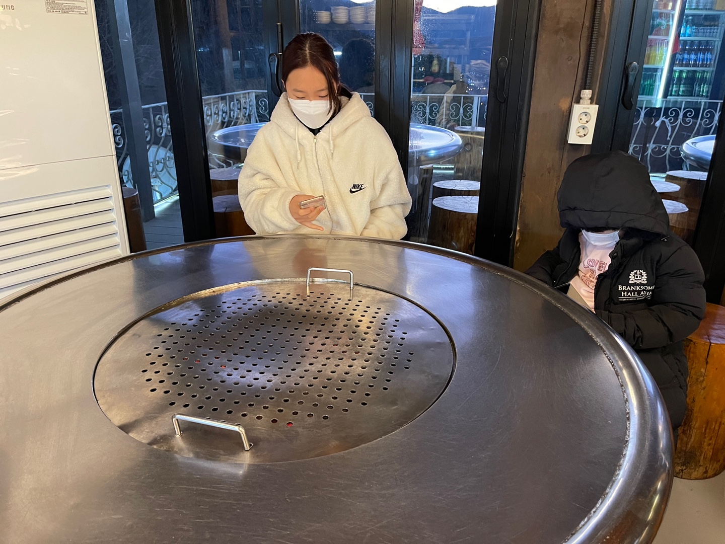 홀에 들어서니 이미 숯불은 피워져서 우리를 기다리고 있고