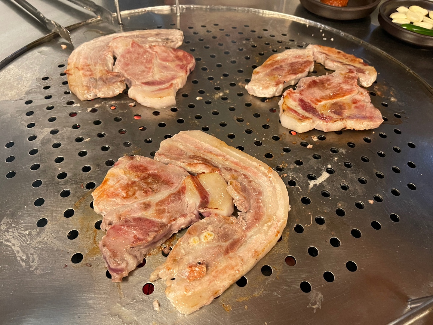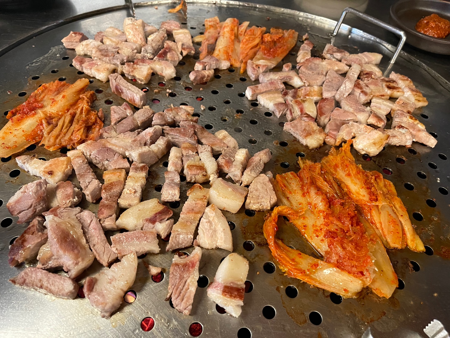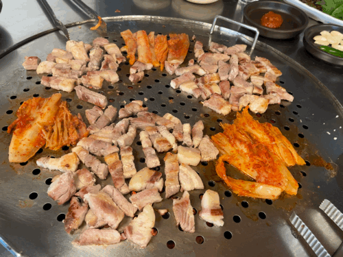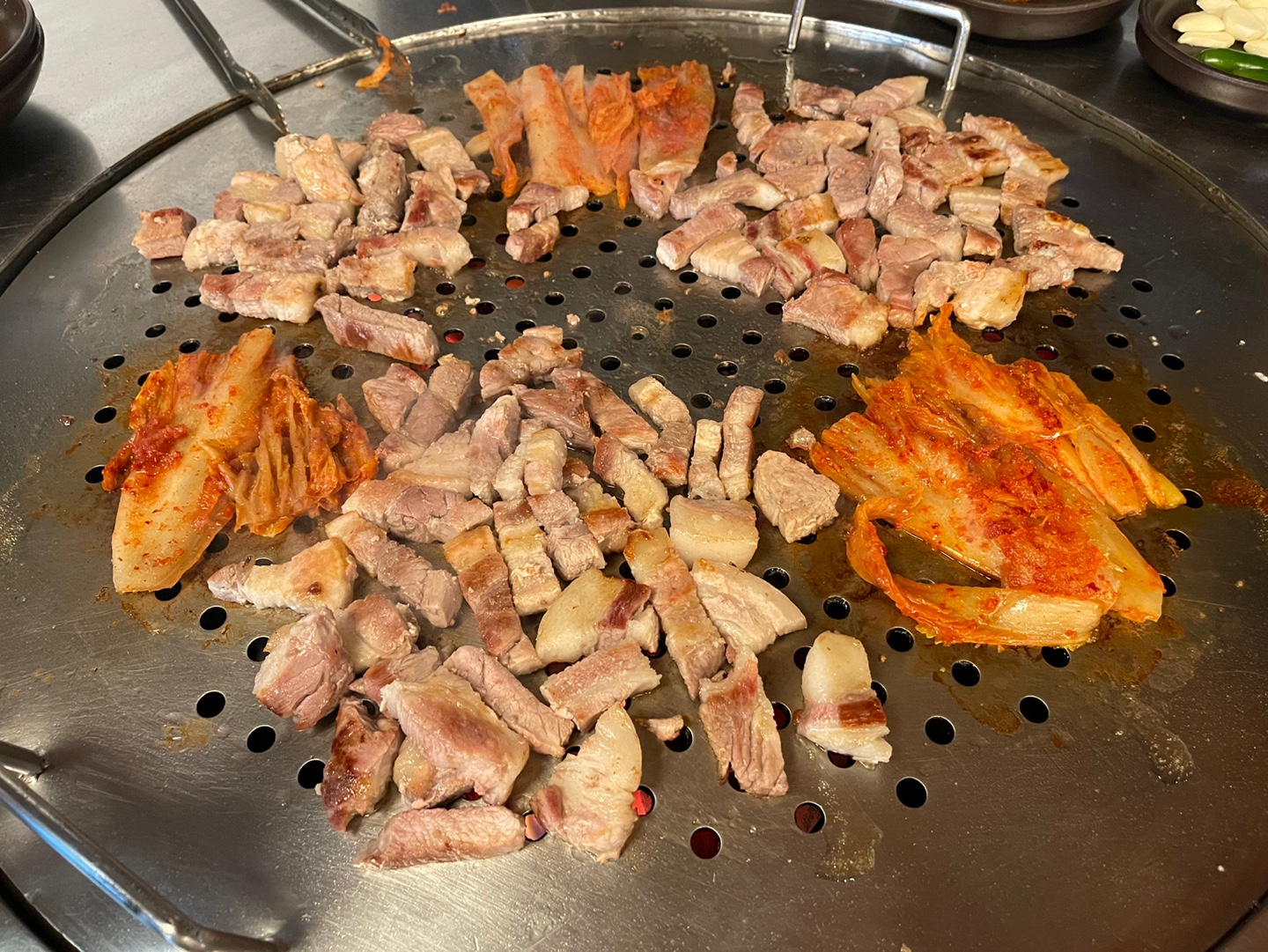 우리 삼겹살에 김치 구워먹는거 좋아하잖아요.