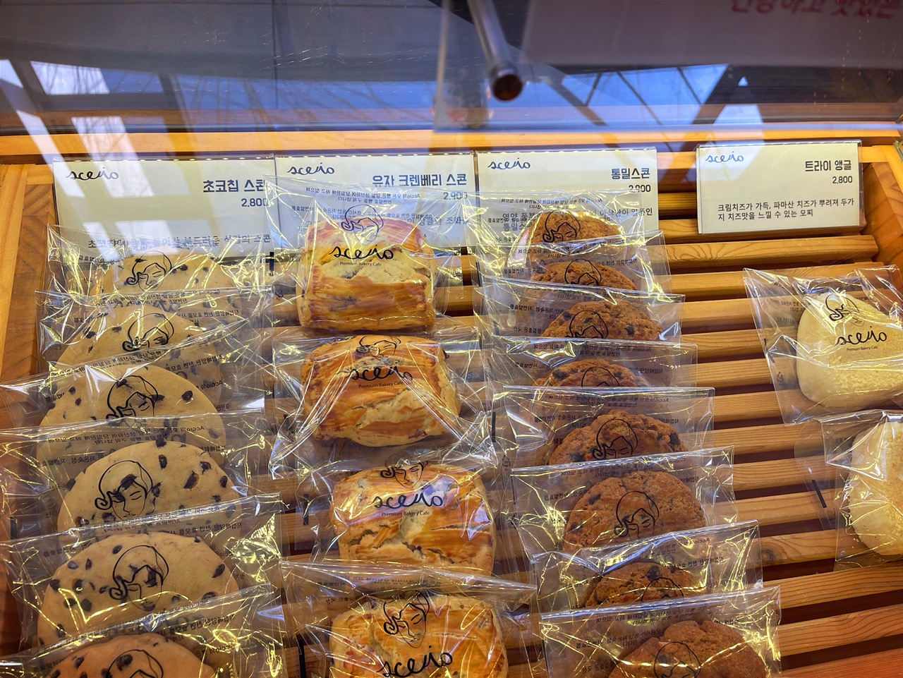 초코칩 스콘 2800원 / 유자크렌베리 스콘 2900원 / 통밀스콘 2900원 / 트라이앵글 2800원