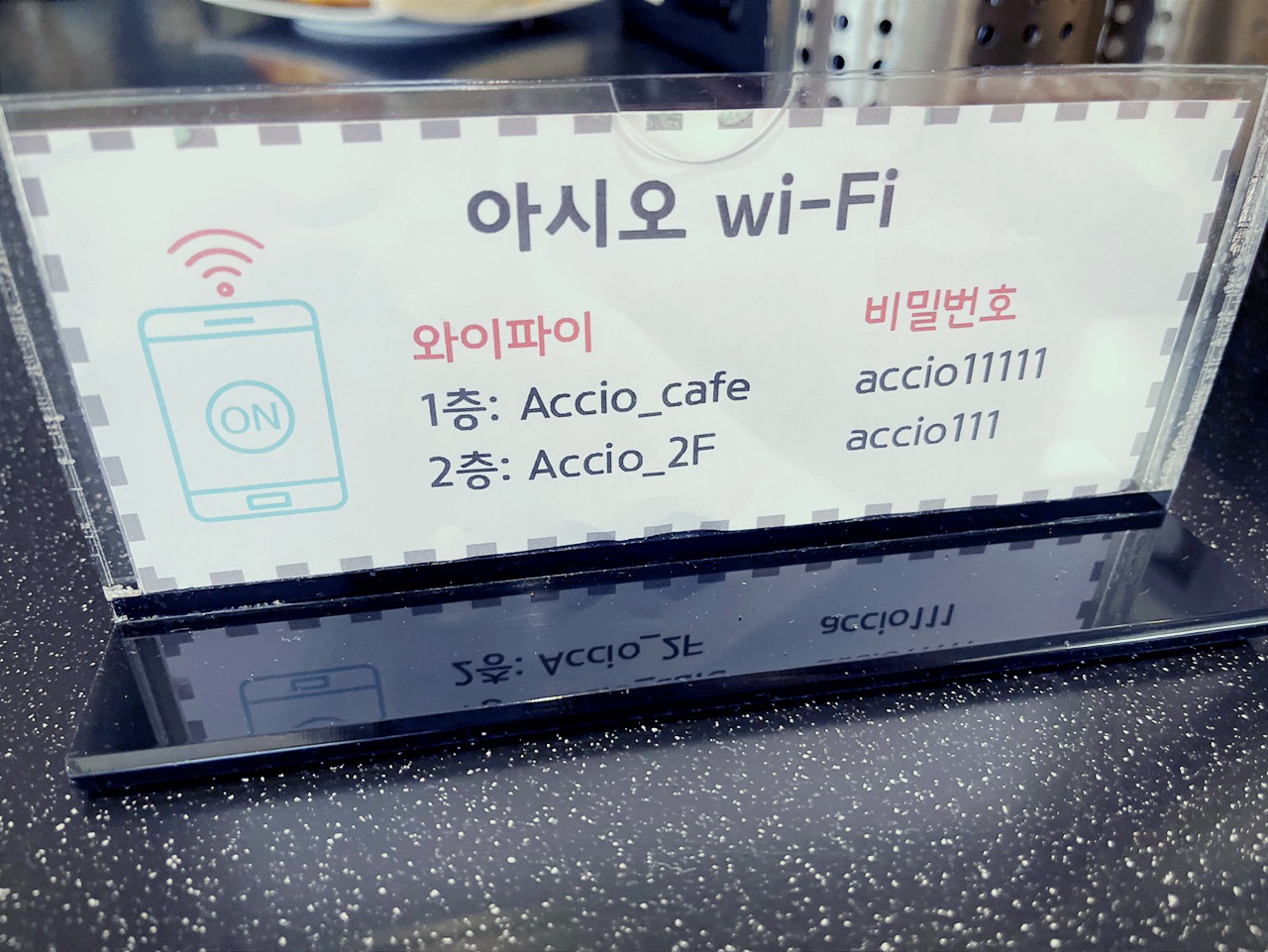 와이파이 1층 Accio_cafe 비밀번호 accio11111