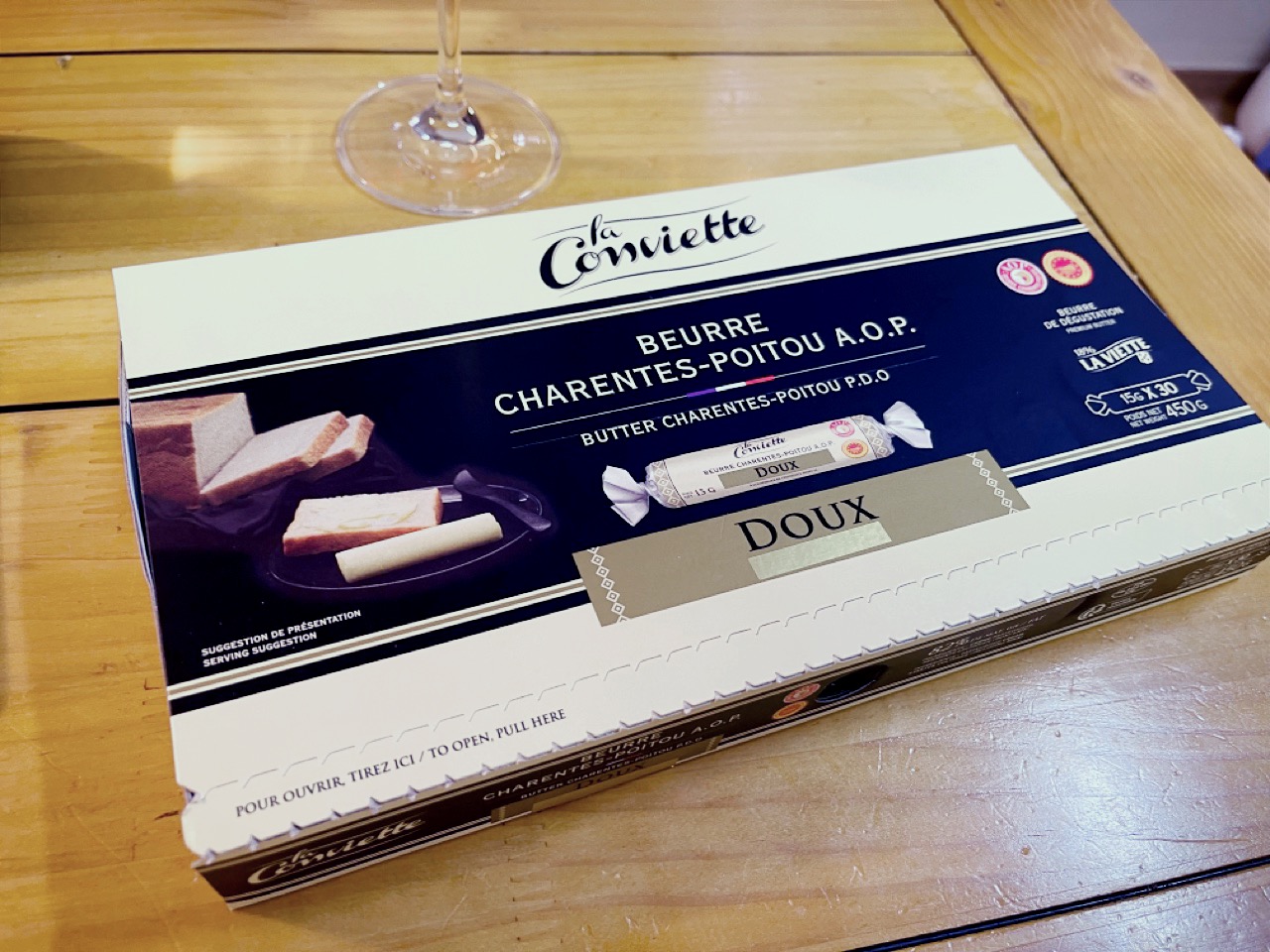 라꽁비에트 버터 가염 450g 15g 30개 들이를 구매했습니다. 이마트 트레이더스갔는데, 급 눈에 들어오는 문구들 : 5성급 호텔, 1등석 기내식에 공급되는 고급버터로 18시간 이상 숙성된 유크림을 고유의 전통방식으로 생산한 프랑스 3대 버터 생산지 샤랑트푸아트 지역의 A.O.P 인증버터라고 하는데 비싸기는 비싸군요. 하지만 5천원 할인해준다하니 괜히 또 한번 먹어보고싶어서 사보았습니다.