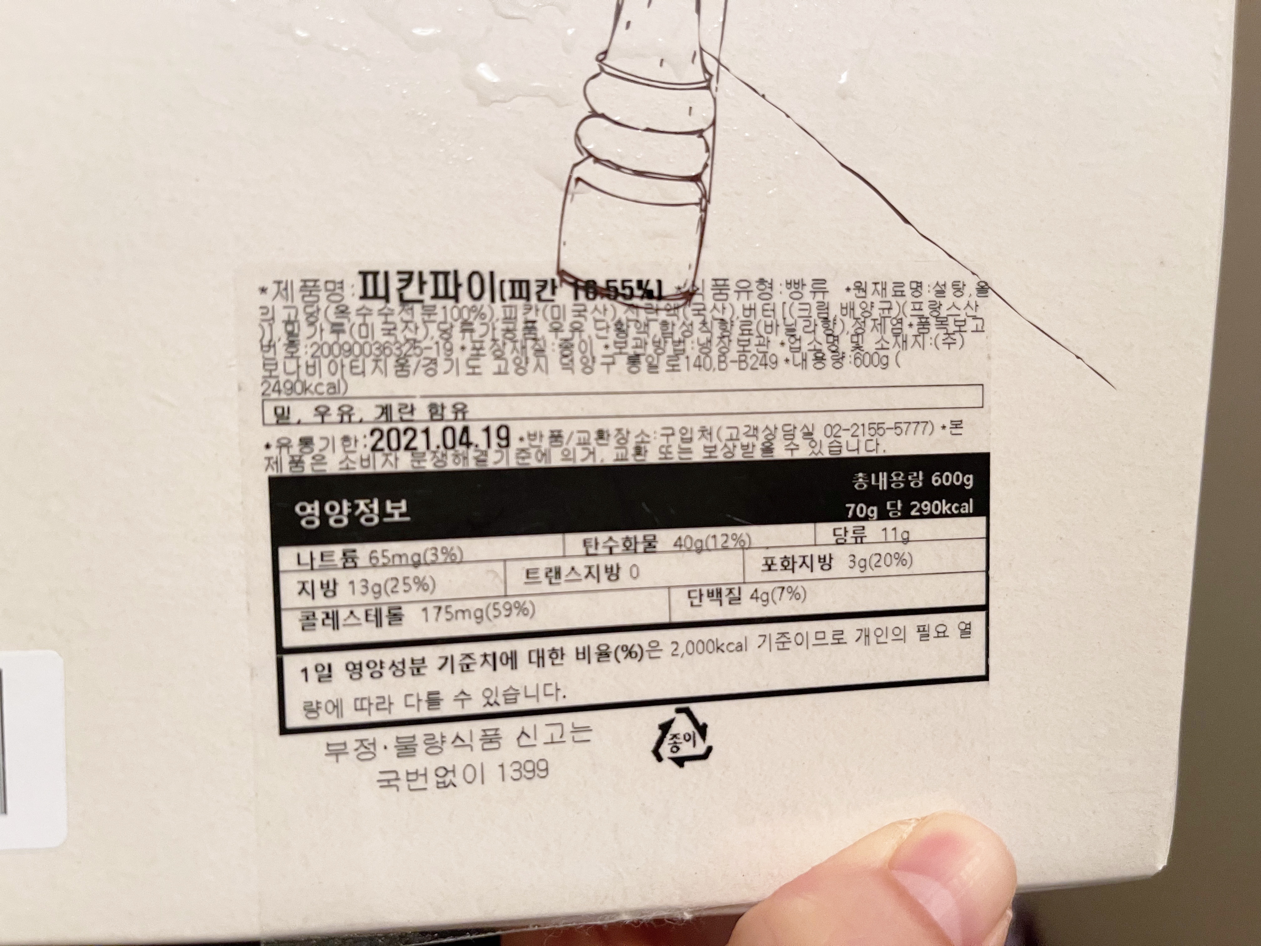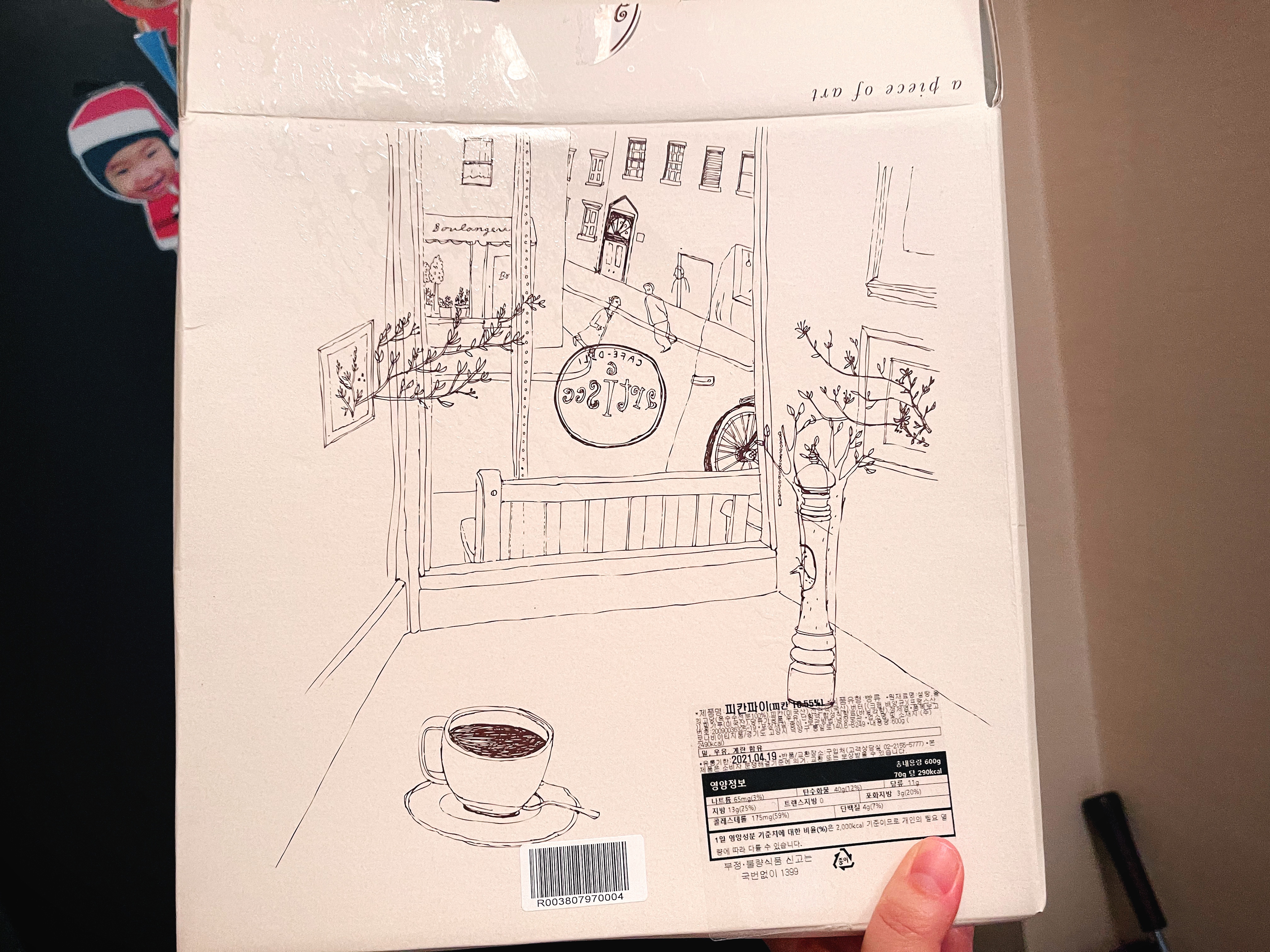 패키지 이쁜데, 제가 쿠팡서 사고 배송을 받았는데, 한쪽이 열려있더라구요. 화도나고 어이가 없었지만, 둥근 파이가 움직이지않게 고정이 되어있어서 그나마 다행이었습니다. 다른 케익들을 사봐도 이렇게 허술하지는 않았는데, 왜 이렇게 스티커하나만 붙여서 판매하시는 것일까 의문을 잠시...