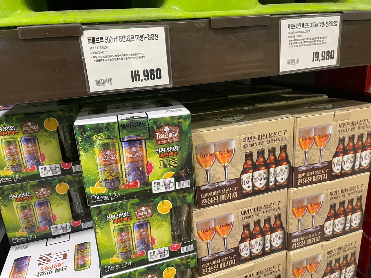 빅웨이브 / 제주위트에일 / 1866블론드 / 머피스 아이리쉬 스타우트 / 트라피스트 시메이 골드 / 기네스 엑스트라 스타우트 / 필스너우르켈 / 스텔라 아르투아 / 홉하우스 13 라거 / 바르슈타이너 케그 / 트롤브루 / 세인트마틴 블론드 / 산미구엘 / 템트9 스트로베리 / 스팀브루 크래프트3종 스팀브루 저먼레드 스팀브루 임페리얼 ipa 스팀브루 임페리얼 스타우트 / 코젤다크 코젤라거 / 바르슈타이너 / 칭따오 퓨어 드래프트 / 칼스버그 / 구스아일랜드 IPA / 크롬바커 필스 무알콜 / 한맥 / 곰표밀맥주 / 그림버겐 블랑쉬