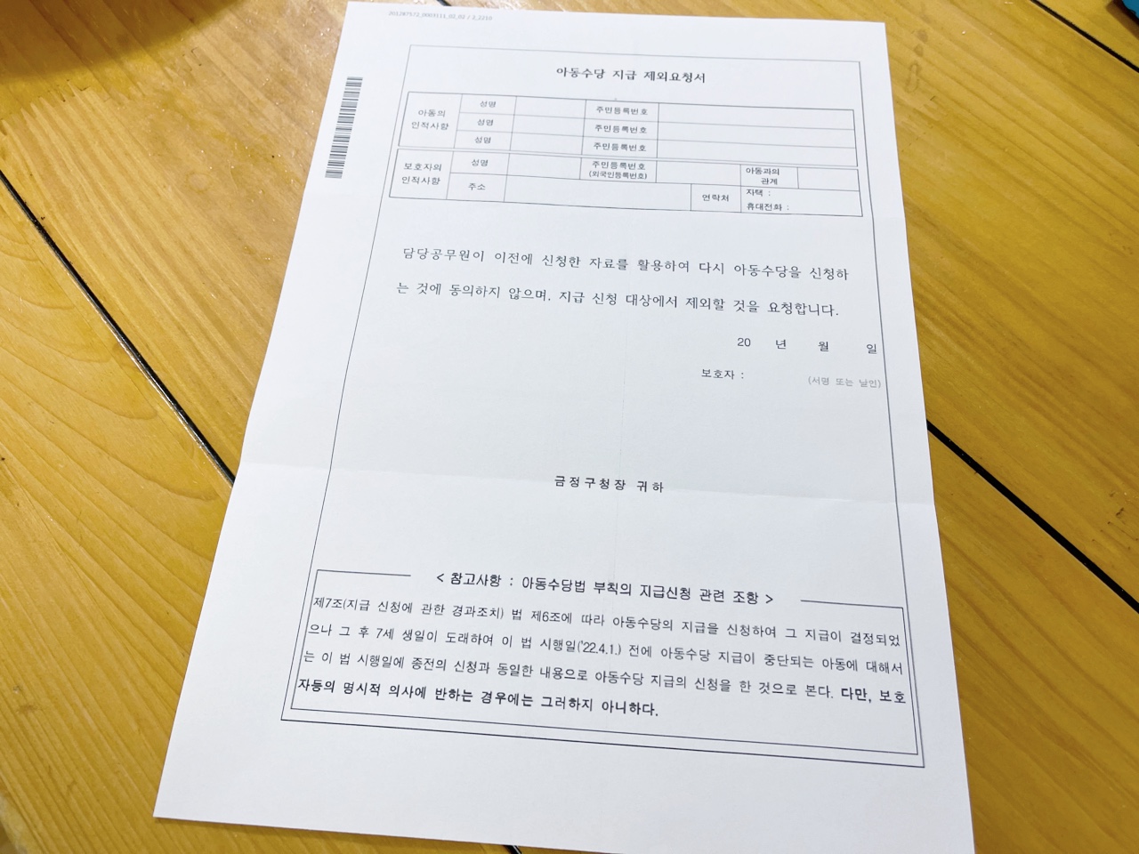 (단, 아동수당지급을 원하지 않는 경우는 예외)