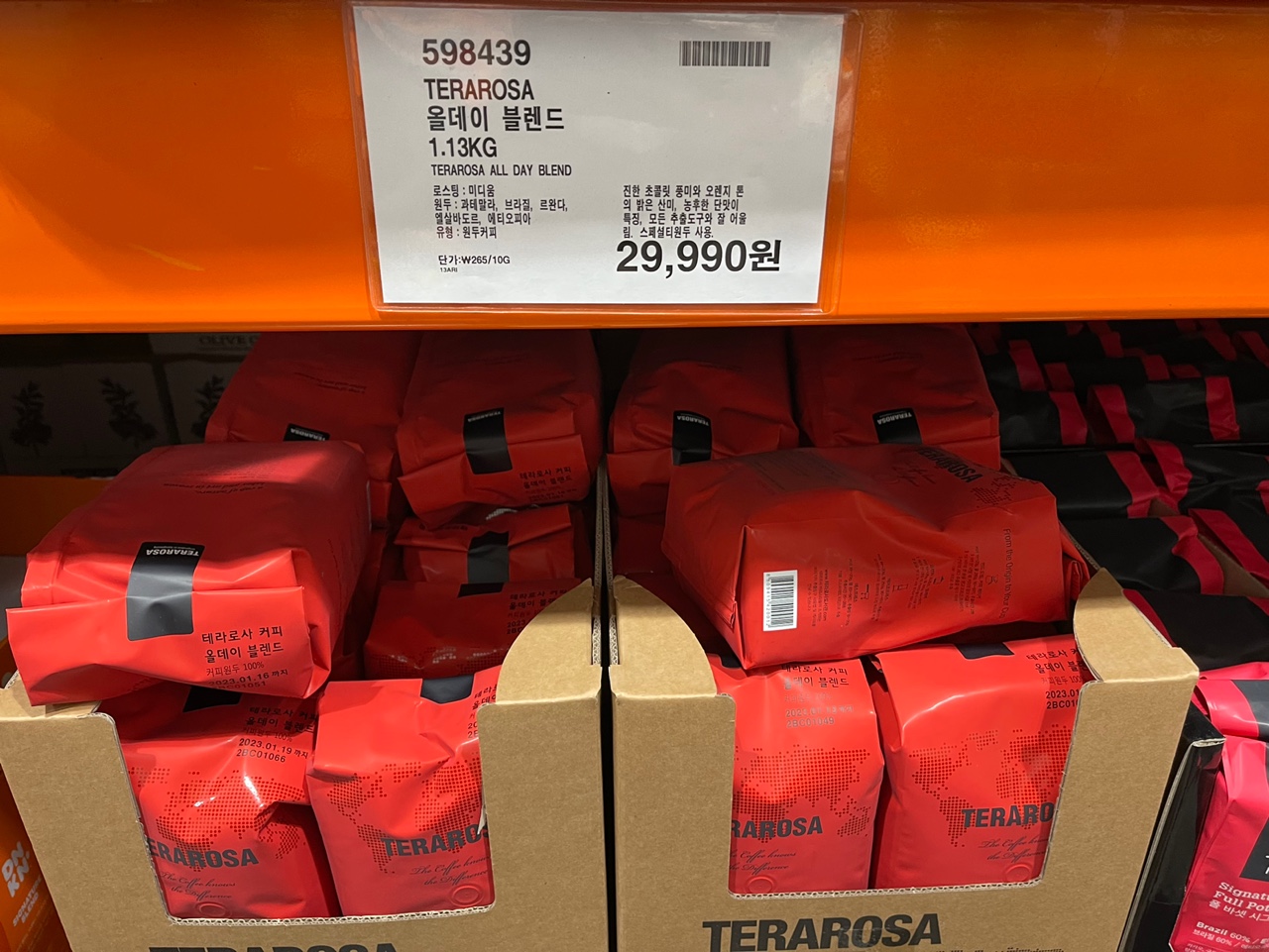 테라로사 홀빈 원두 올데이블렌드 : 29990원 1.13kg