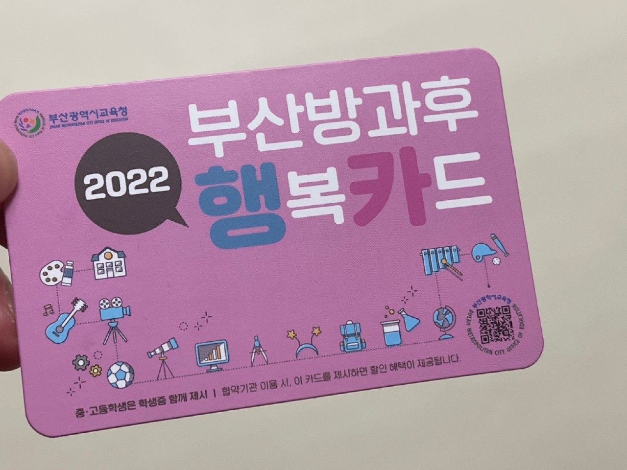 2023년 부산 방과후 행복카드 할인 되는곳 모두 알아보고 체크해보기로 합니다. 올해는 플라스틱카드나 스티커가 아니라서 너무 아쉽습니다. 아니 모두에게할인을 해주시면 될텐데요 부산방과