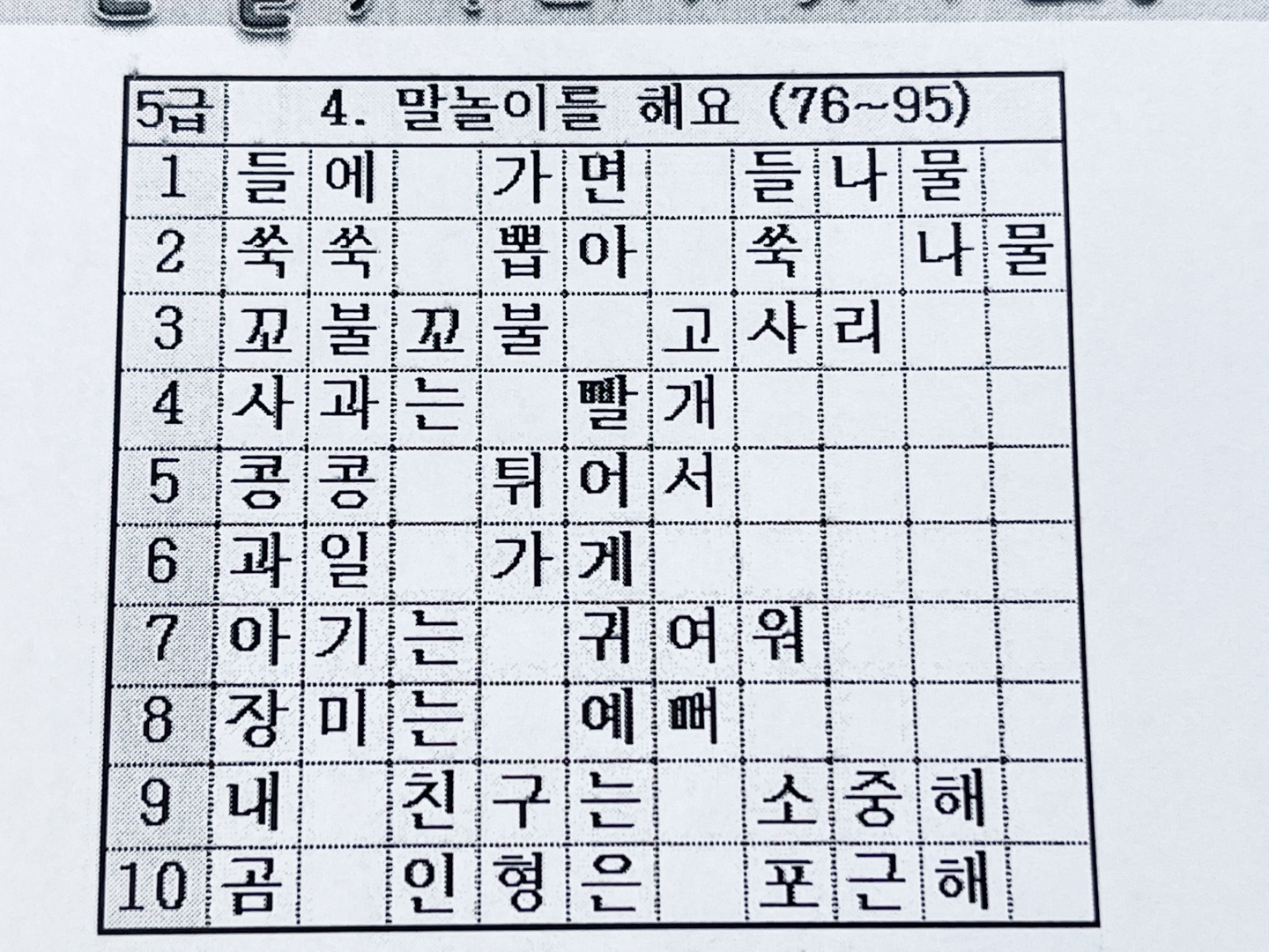 초등학교 2학년 받아쓰기 급수표를 올립니다.