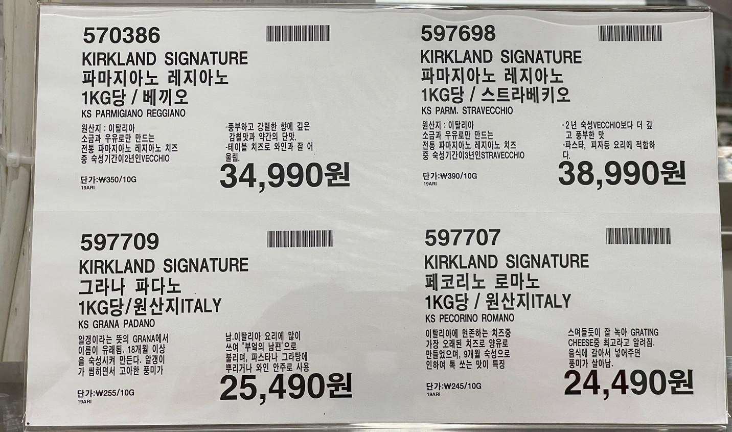 KIRKLAND SIGNATURE 그라나 파다노 1kg당 / 원산지 이태리 KS GRANA PADANO 25490원 18개월 이상 숙성 / 부엌의 남편