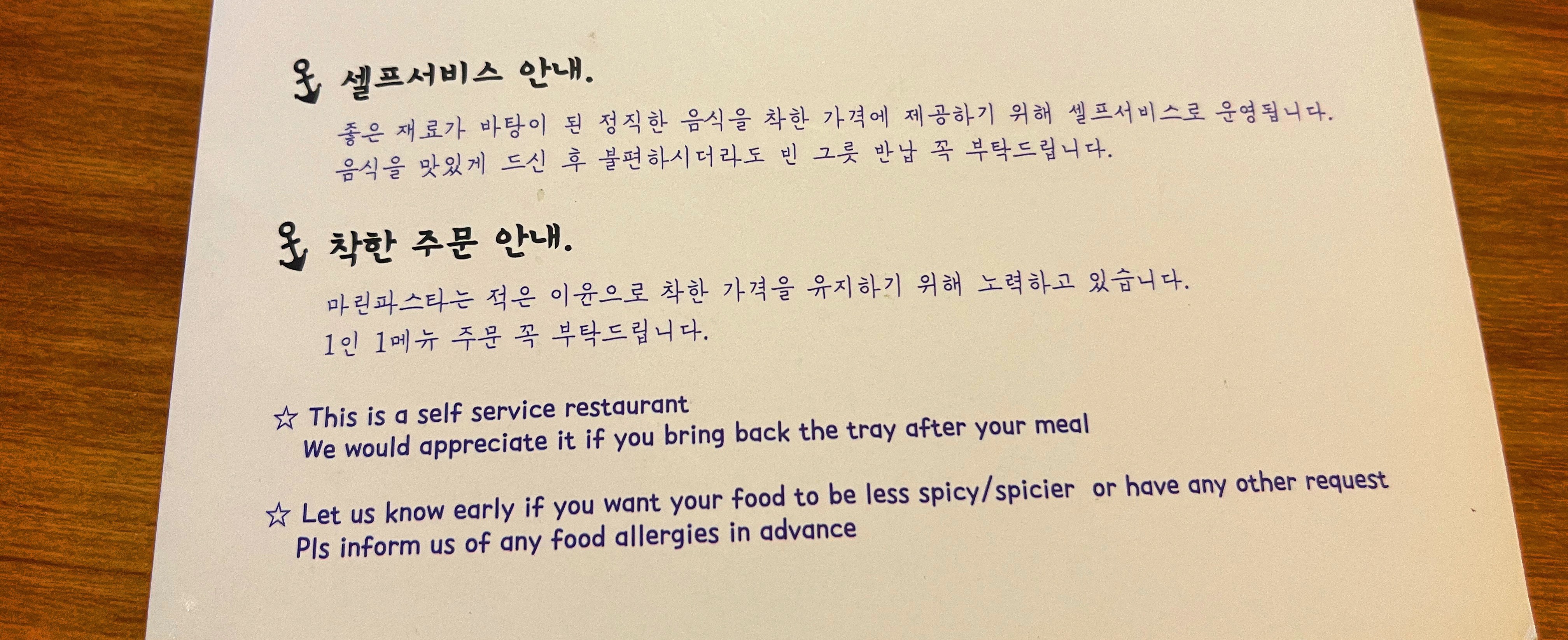 마린파스타는 적은 이윤으로 착한 가격을 유지하기 위해 노력하고 있습니다.