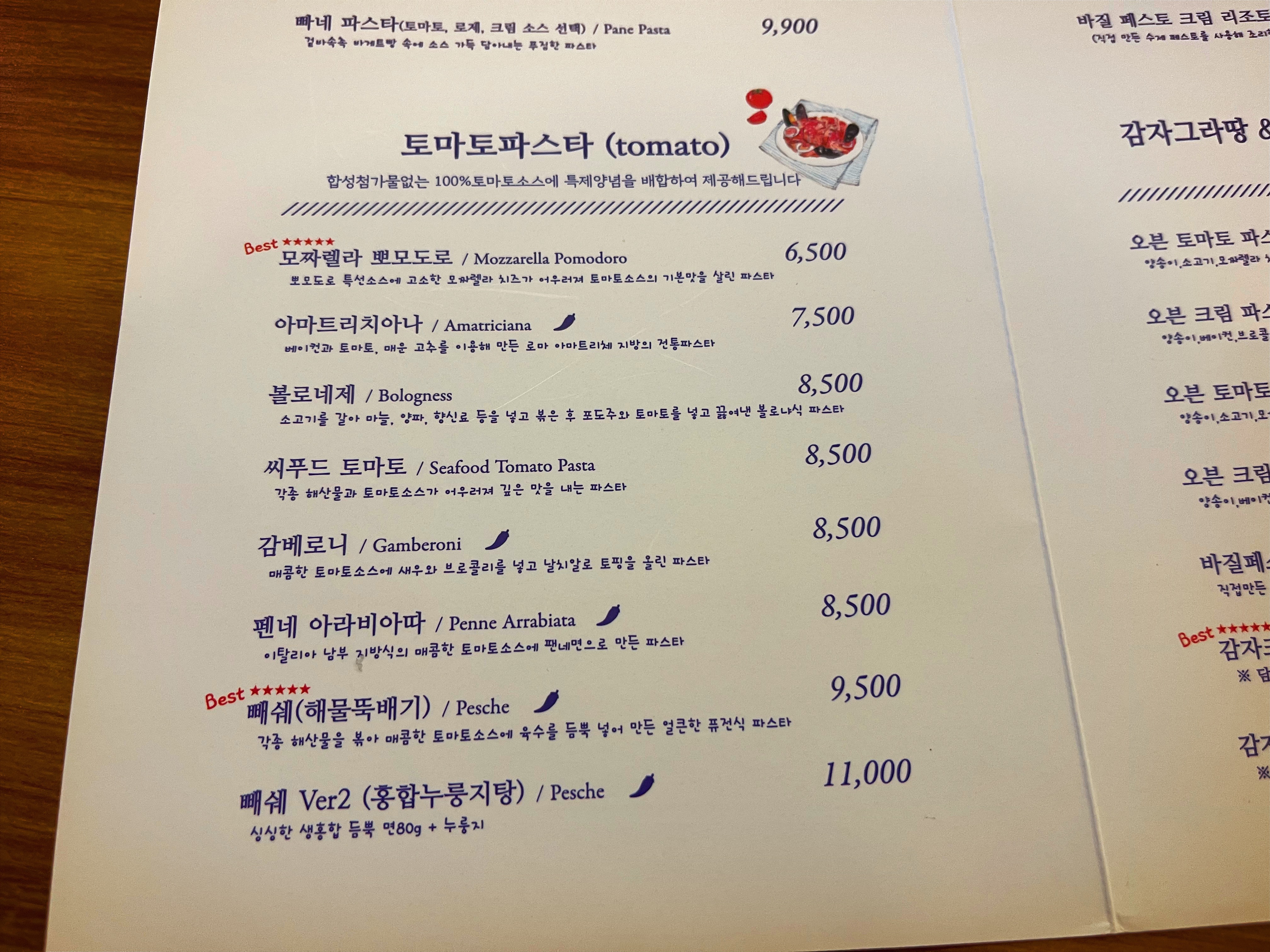 저는 기본 뽀모도로 파스타 좋아하는데,