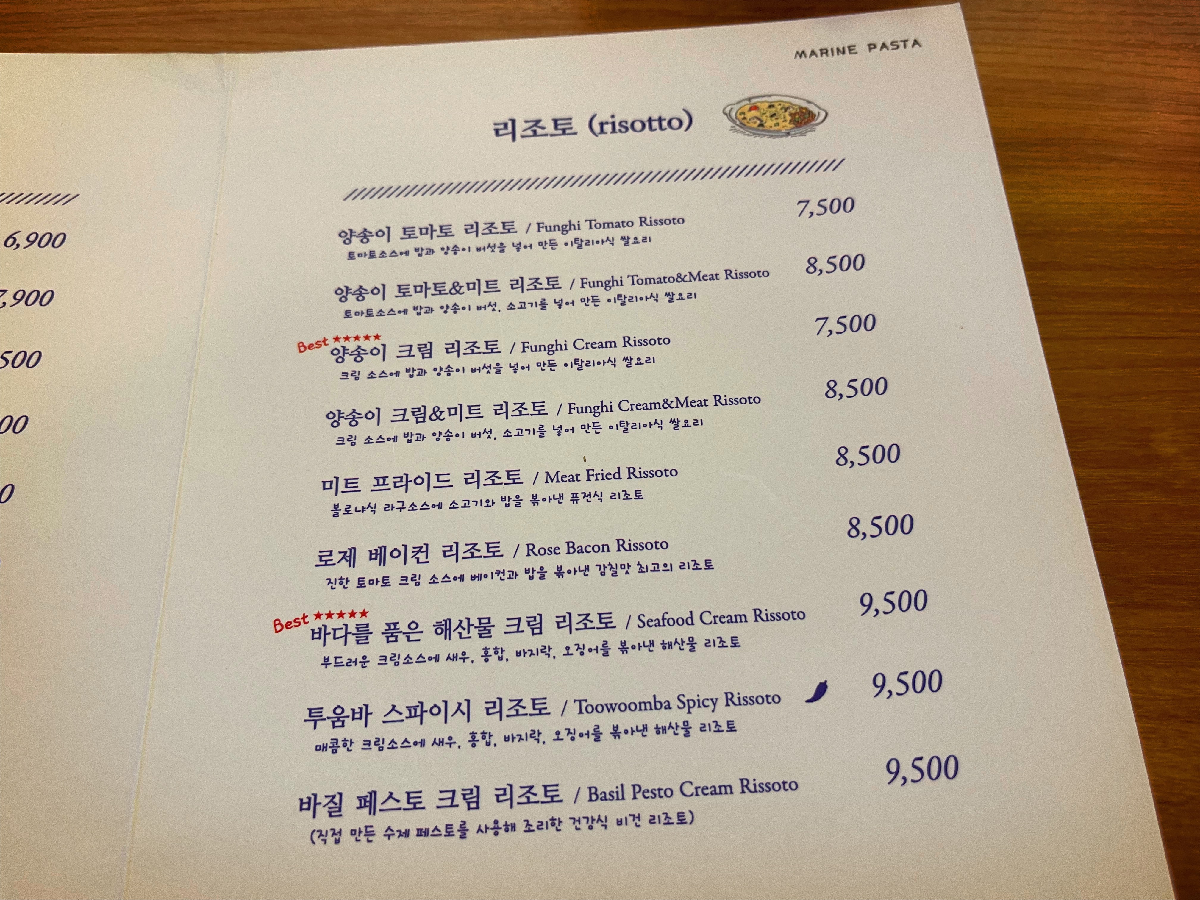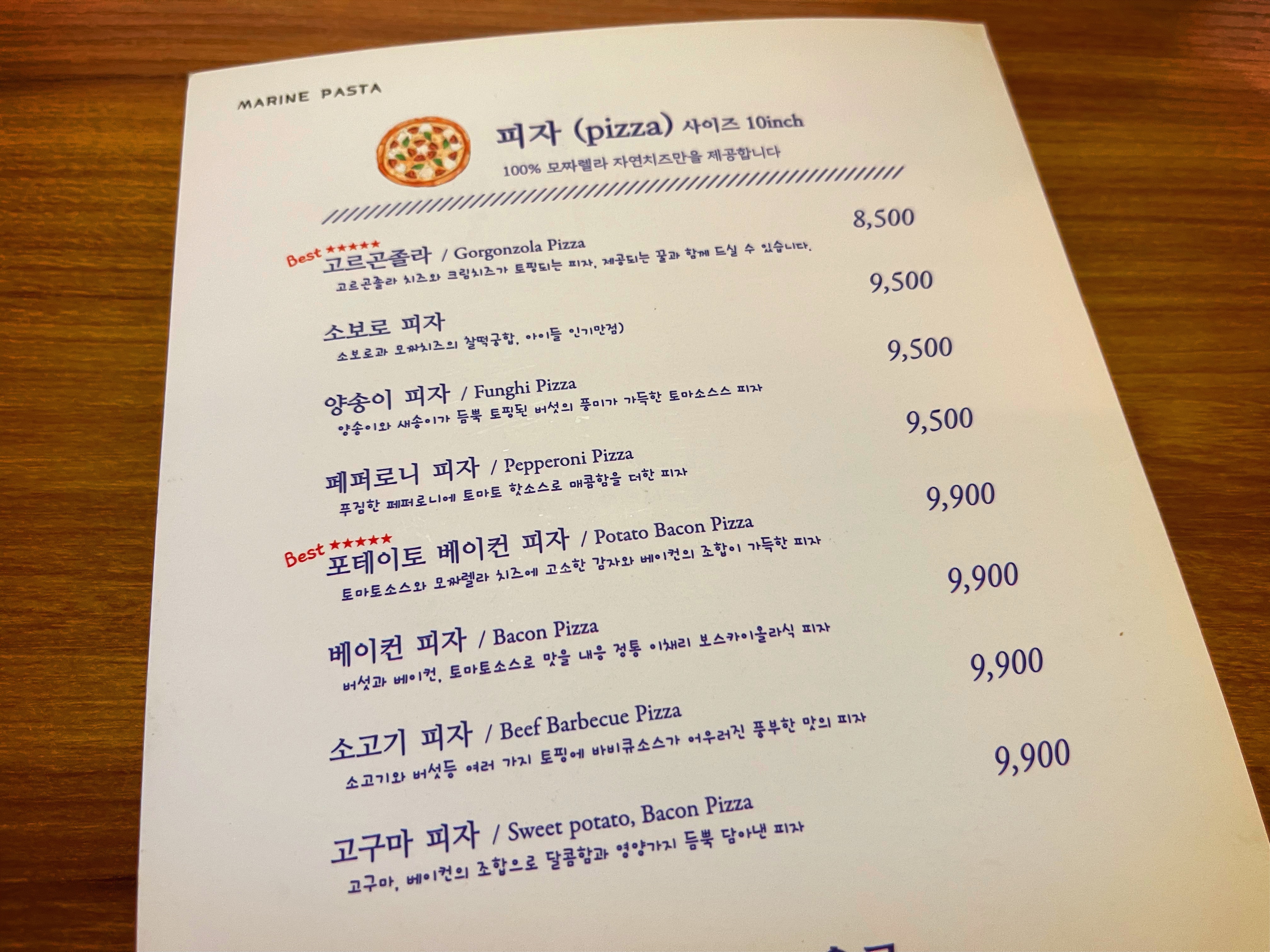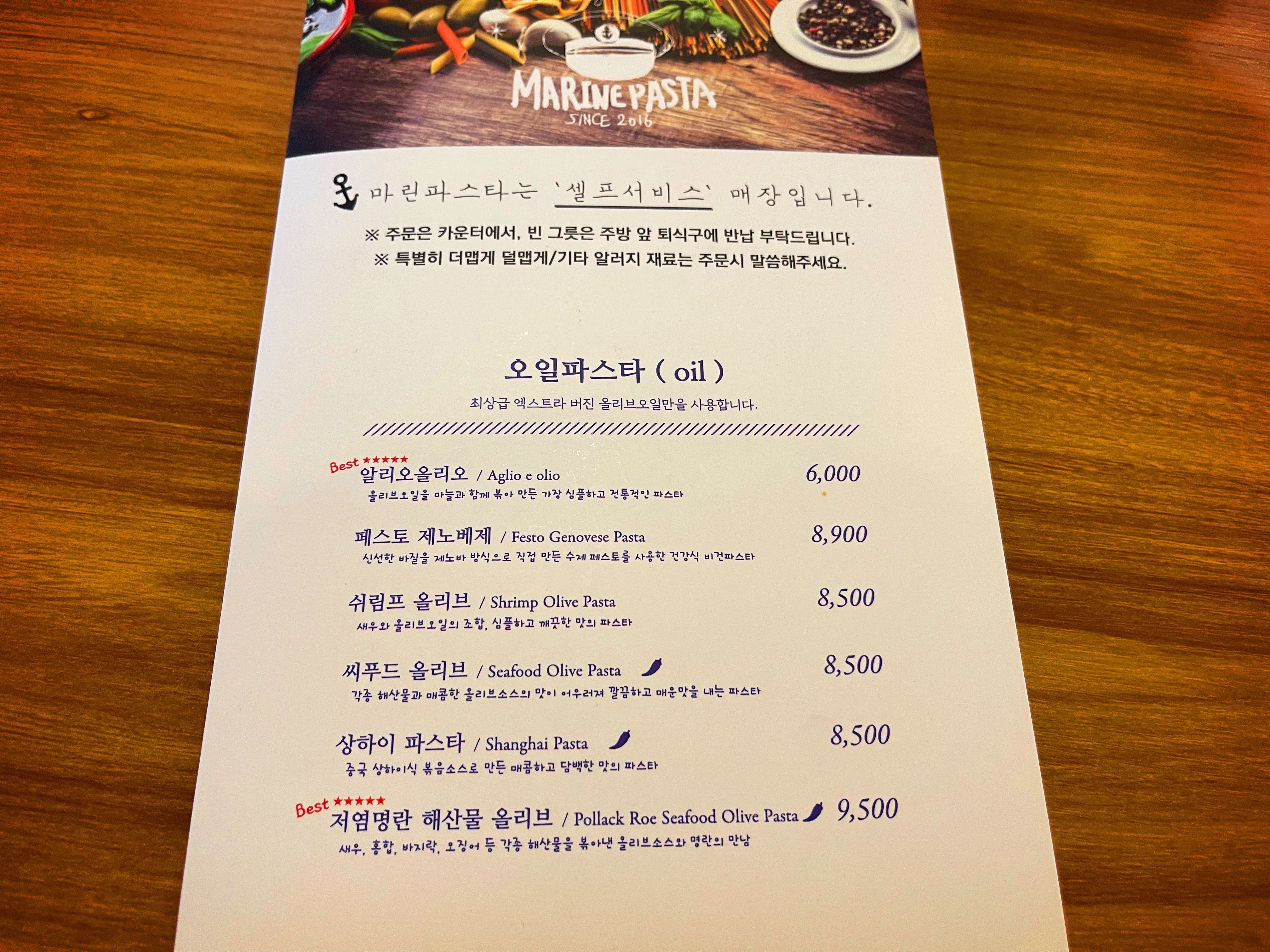 왜냐하면 마린파스타는 아주 특별한 메뉴를 제외하고는 대부분 만원 이하에서 끝납니다.