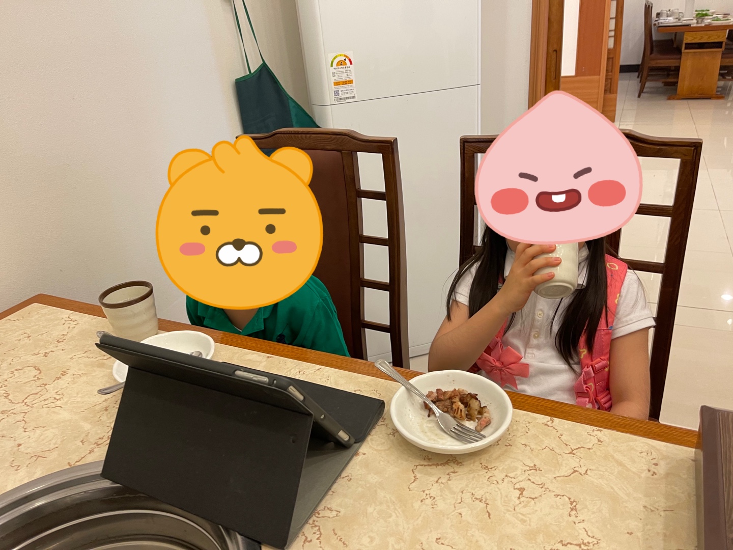 아이들은 대체로 늘봄흑돼지의 흑돼지고기를 잘먹었습니다. 원래 이아이들은 소고기를 잘먹습니다. 돼지고기의 경우 정말 맛있는것만 좋아합니다. 100g 9000원 이상하는 집은 다 잘먹더라구요.(예를 들면, 맛찬들 왕소금구이 잘먹습니다. 그리고 최근에 주문해서 먹어본 제주 마켓프레시의 암퇘지세트도 잘먹었습니다, 제주돼지가 정말 맛있기는 맛있나봅니다. 사실 돼지고기를 4인분시켰는데, 추가주문해도 더먹을 수는 있지만 밥도 먹어야하고, 저는 친구가 안사기를 바랬지만 또 괜히 사는 일이 생길까봐 적당히 먹고 마무리 했습니다. 고기4인분+공기밥5개 +두부된장찌개+김치뚝배기