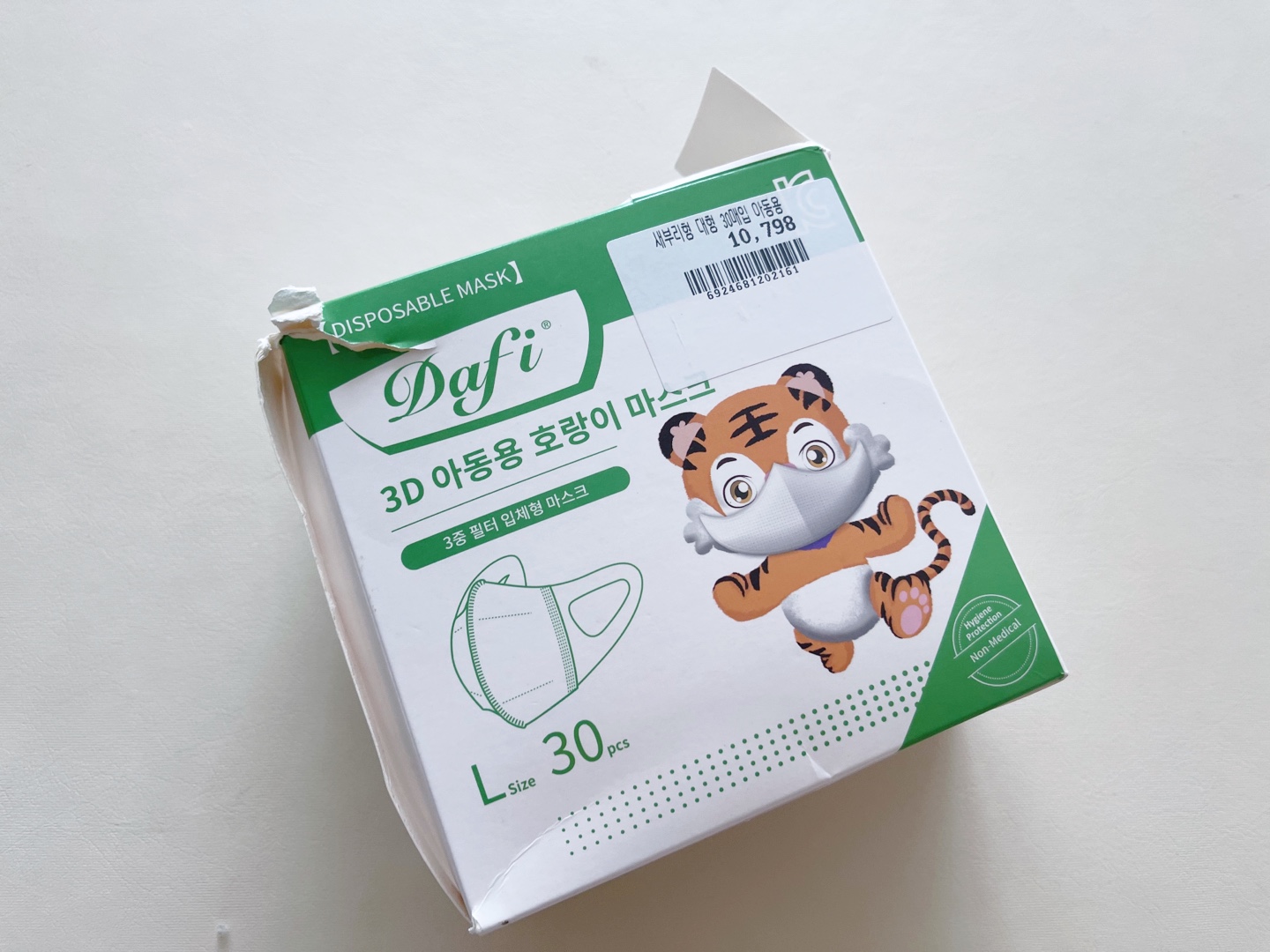 3중 필터 입체형 마스크 사이즈가 라지였지만, 이게 좀 작게 나왔나 봅니다. 9살인 아이에게는 좀 딱 맞아서 6살 둘째가 씁니다.