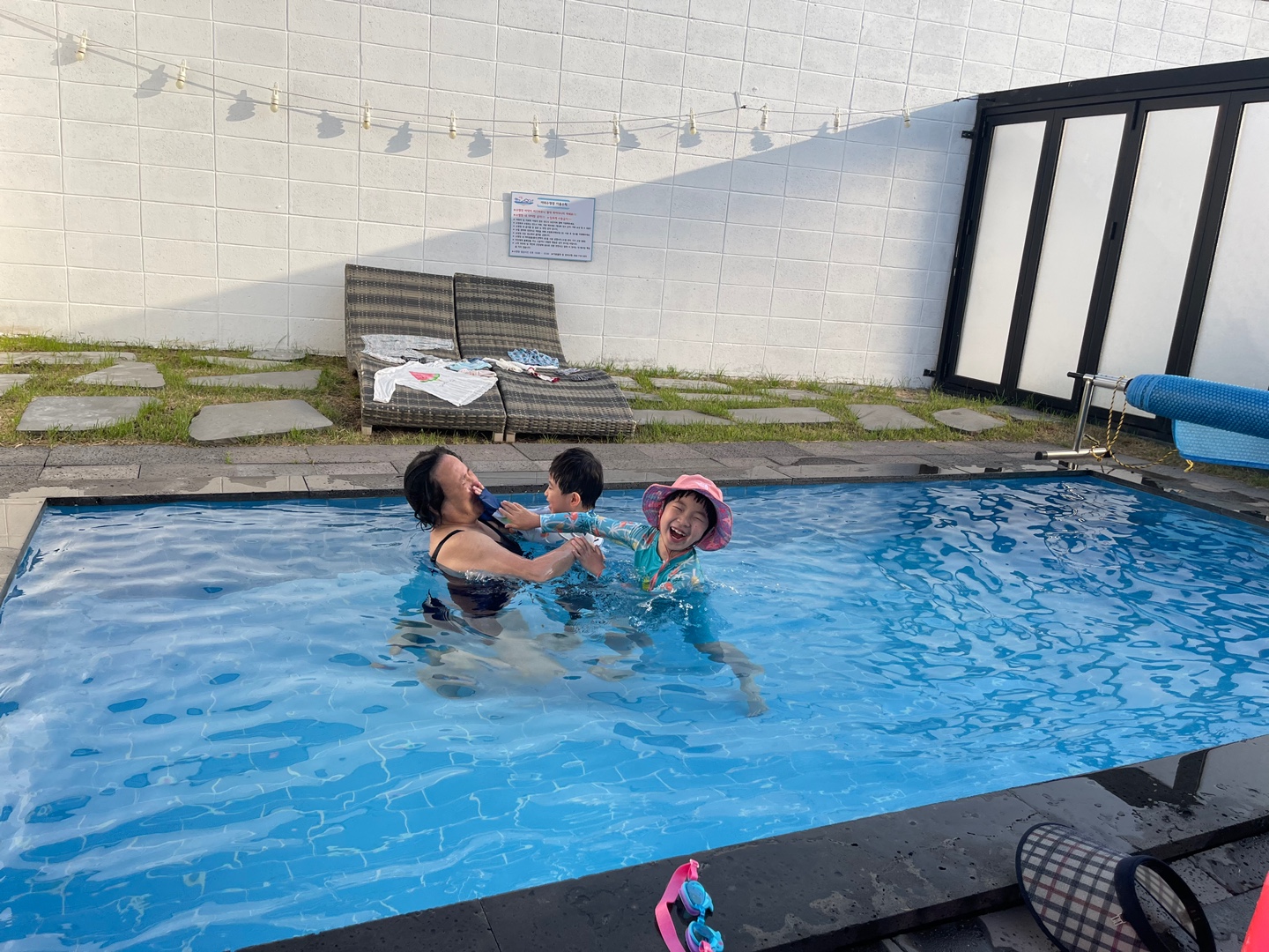 풀빌라소랑 예약한 이유는 첫째, 개인풀이 있다는것 : 미온수 유지가 잘되었으며 5월말이었는데 따뜻한물이어서 아이들도 어른도 즐겁게 감기걸리지 않고 물놀이 잘하였습니다.