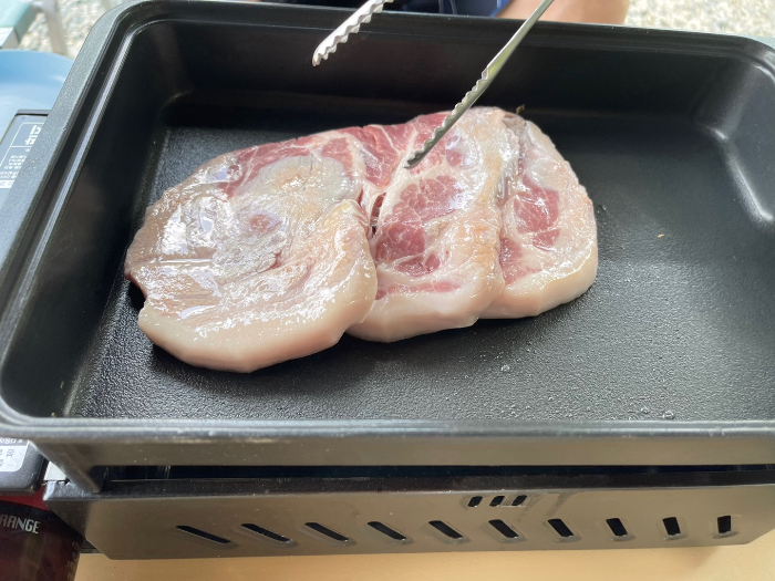 아이들 신나게 수영하고 엄마아빠도 여유있게 맥주한잔 하면서 고기먹으면 정말 맛있죠 ^^ 엄마가 특별히 주문한 제주암퇘지 기본 3키로는 사야하지만, 고기 너무 좋아서 그리고 100그람 가격도 괜찮은 오겹살과 목살 추천하고 싶을 정도라며~~ (구매처는 제주고기어때) 캠핑용 파티용으로 완전 좋습니다. 싸서 추천하는거 아님 고기가 너무 좋아서 추천하는겁니다.