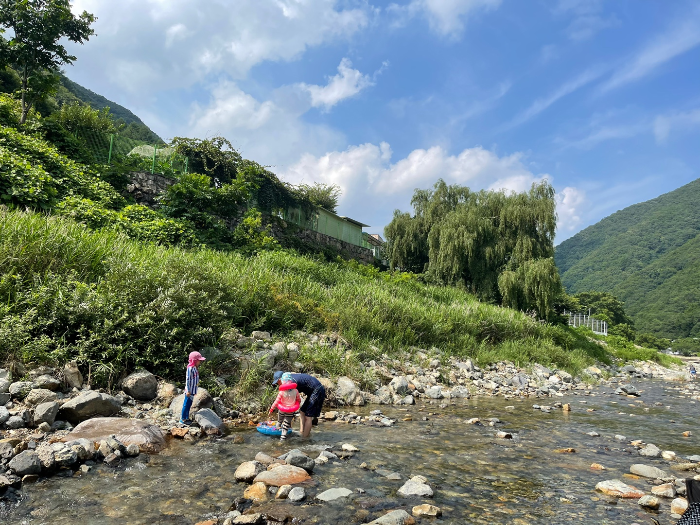 밥먹고 수영하고의 반복이었지만 지루하지 않았던 것은, 수영장과 계곡을 오가서 였다며 칭찬합니다. 현재는 주말은 예약이 거의 풀입니다. 그렇지만 모임하기 좋아서 방학이 끝나기 전에 조동들과 모임할때 평상 빌려서오는 것도 좋고 가족들끼리 평일에 한번 더 오고싶습니다. 탁 트인 하늘도 보고 산도보고 계곡에서 아이들 모습볼때 뭔가 왜 제가 더 좋은 부모가 된 느낌이죠? 자연속에 아이들을 데려다 준 그런느낌이들어서? 그런가봅니다. 나는 이런 엄마다~ ?