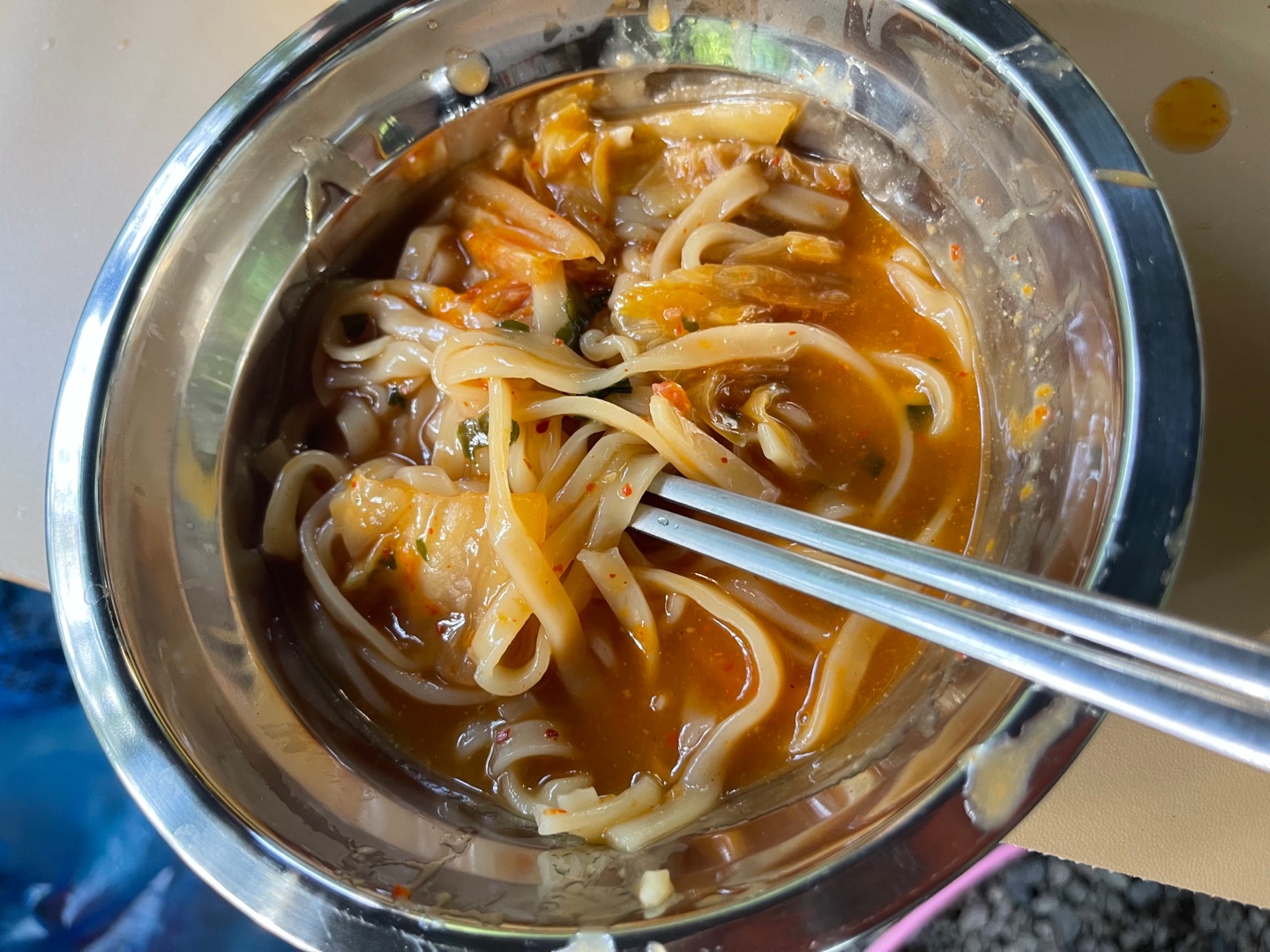 제가 맛있게 먹은 것은 닭칼국수에 묵은지 김치 넣은것