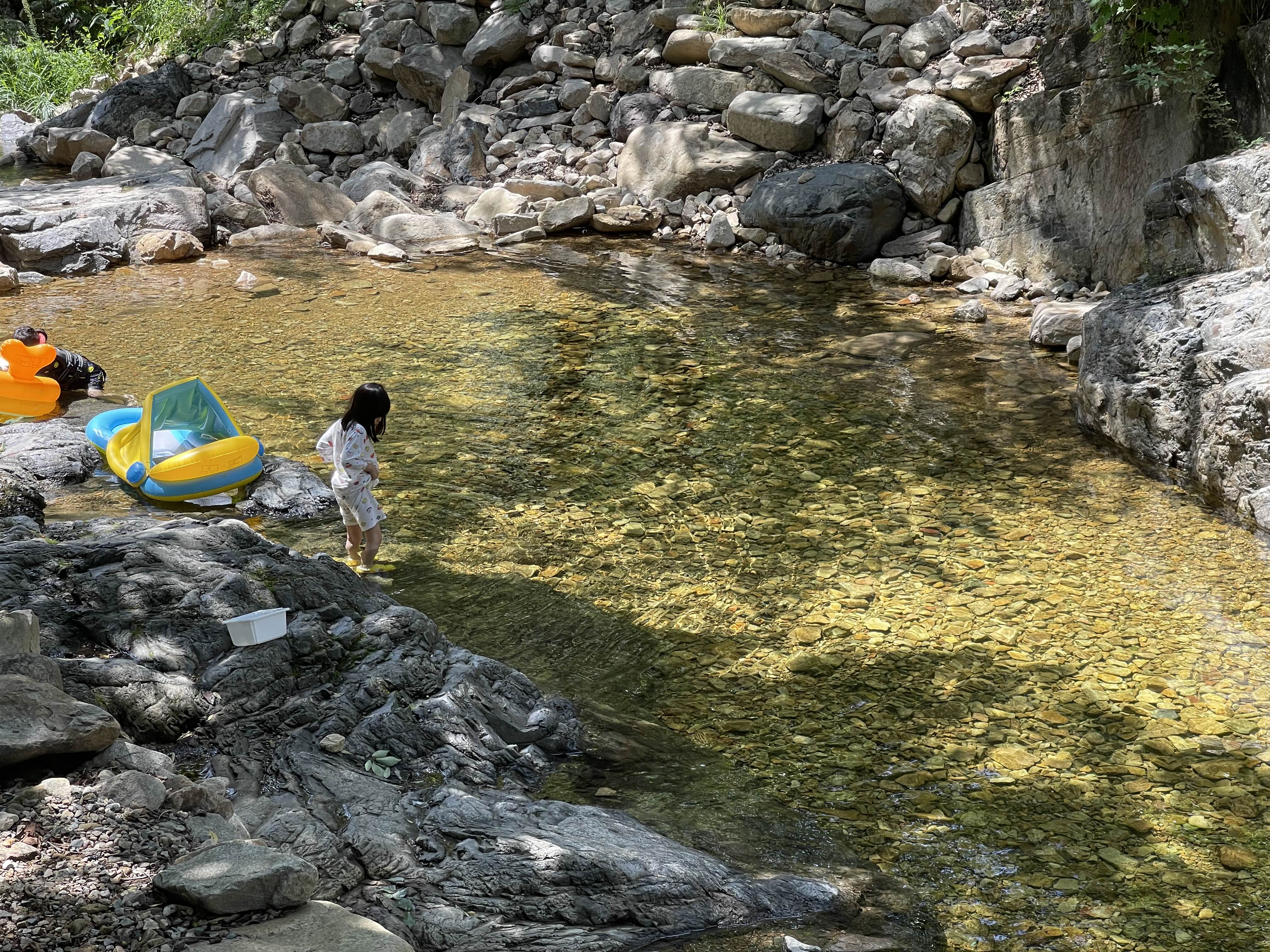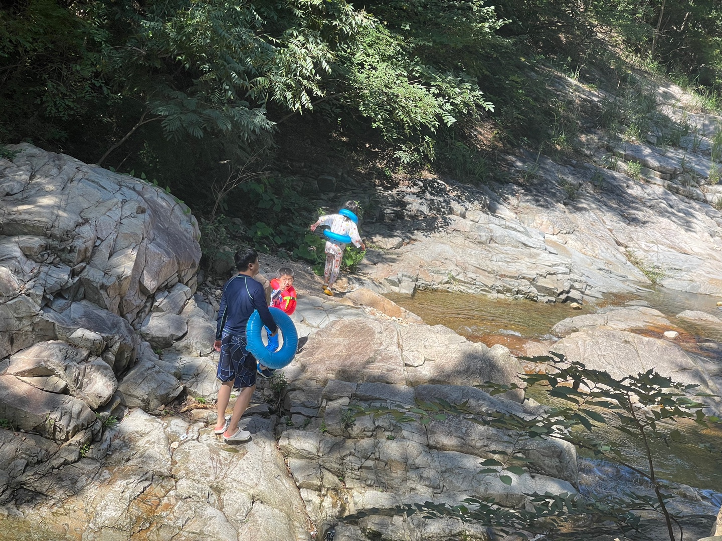 3. 이쁘고 맑은 계곡 : 계곡물이 깊지 않아서 또 바로 옆이고 아이들 잘 보이고 해서 마음에 들었습니다. 다음에는 아이들 좋아할만한 튜브로 한번 달래봐야겠습니다. (옆집에는 근사한 누워서 타는 튜브 가져왔던데 막 비교되고 그랬어요 흑)
