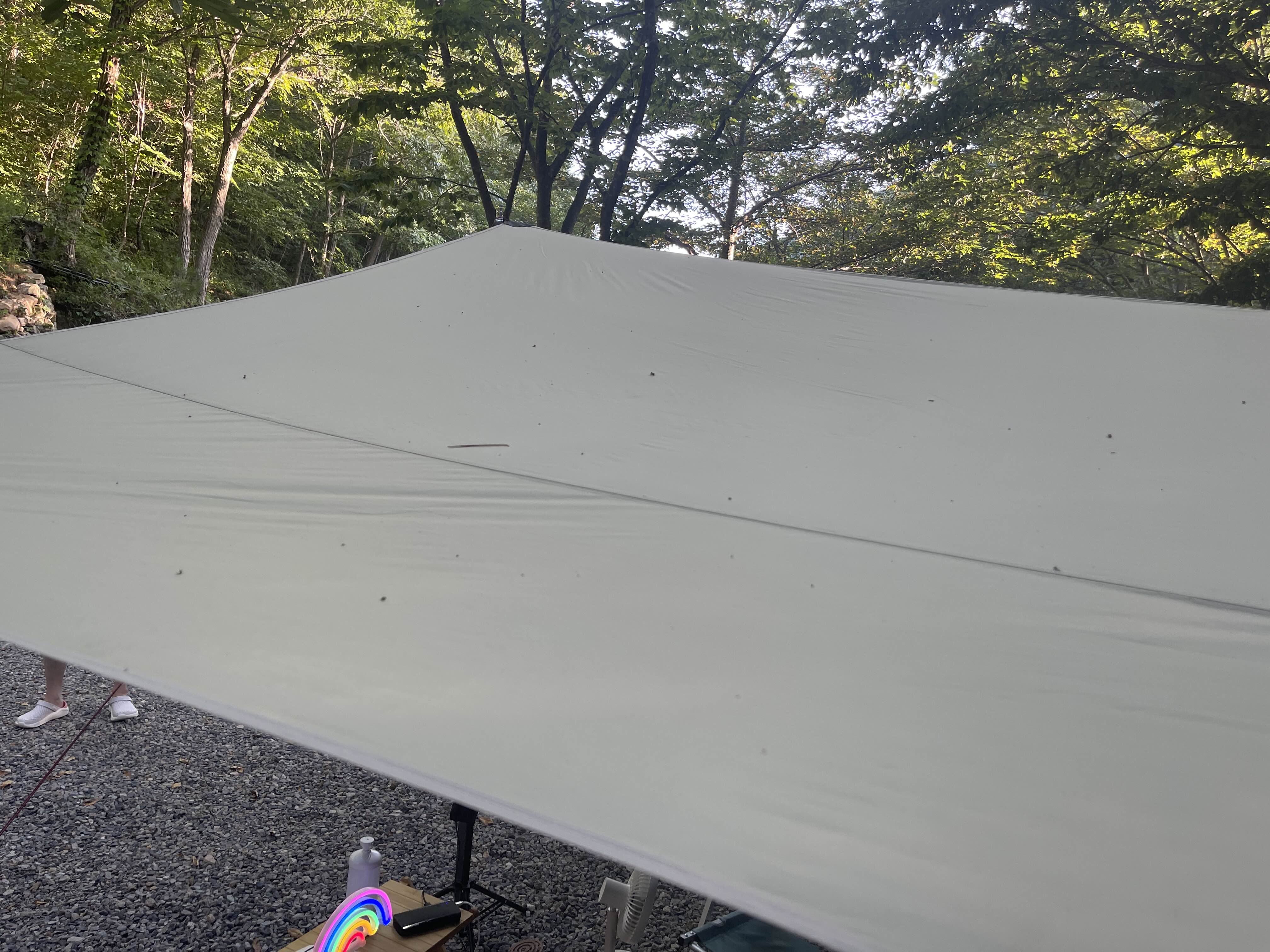 그늘이어도 타프를 치기를 잘 했다는 생각이 들정도로… 나무에서 뭔가 많이 떨어졌습니다.