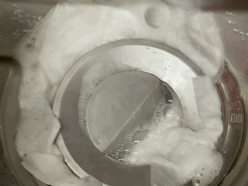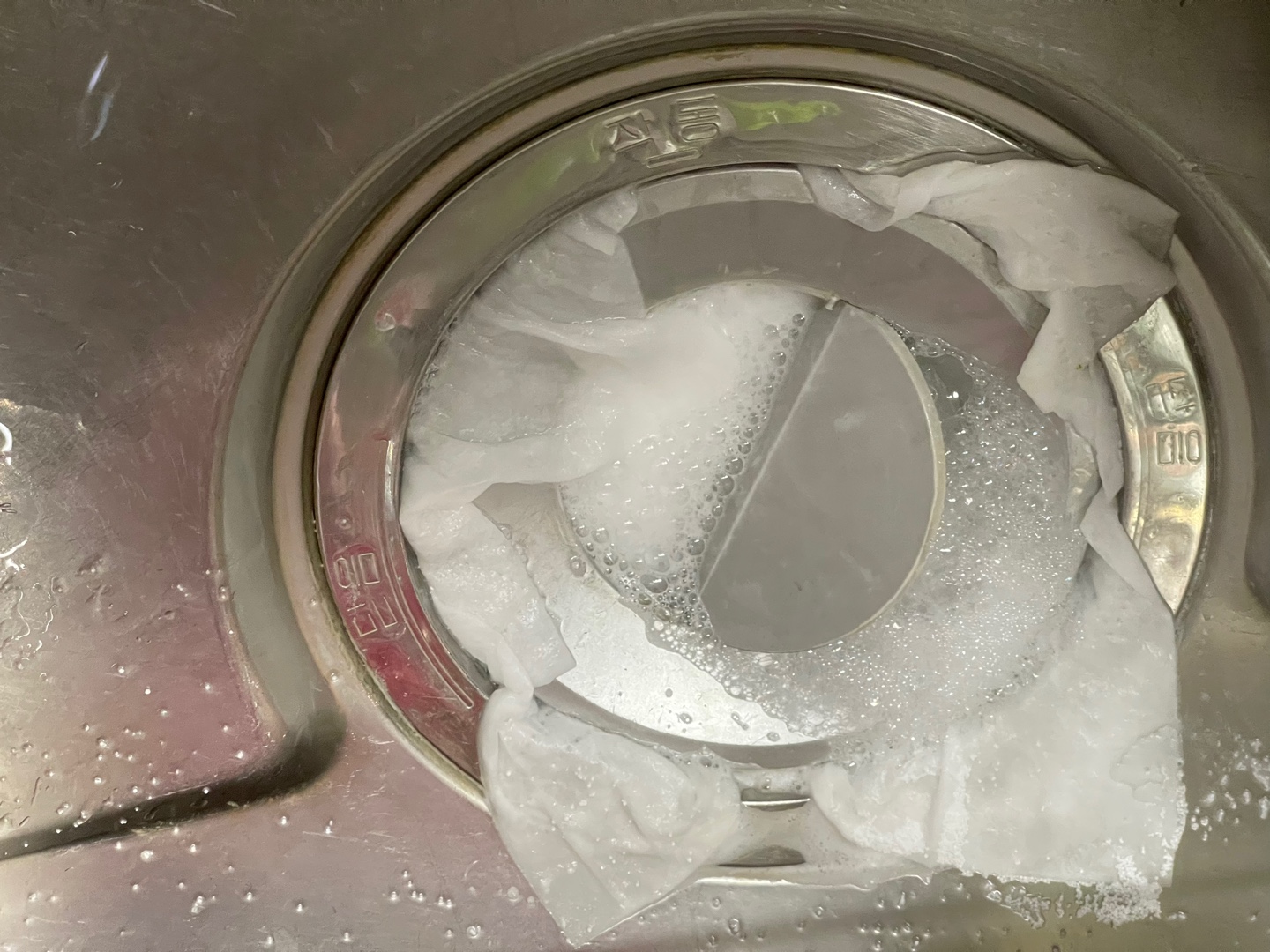 이곳도 따로 닦고 작업하지 않습니다. 바로 물티슈 깔고 고정시켜서 과탄산소다 뿌리고 뜨거운물 부으면 바로바로 자동으로 부글부글부글부글 깨끗해집니다.
