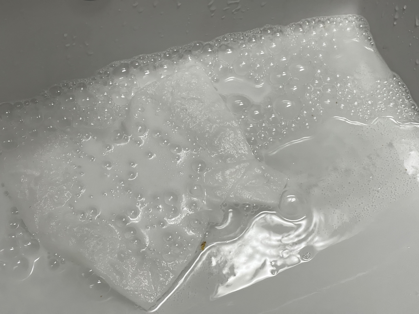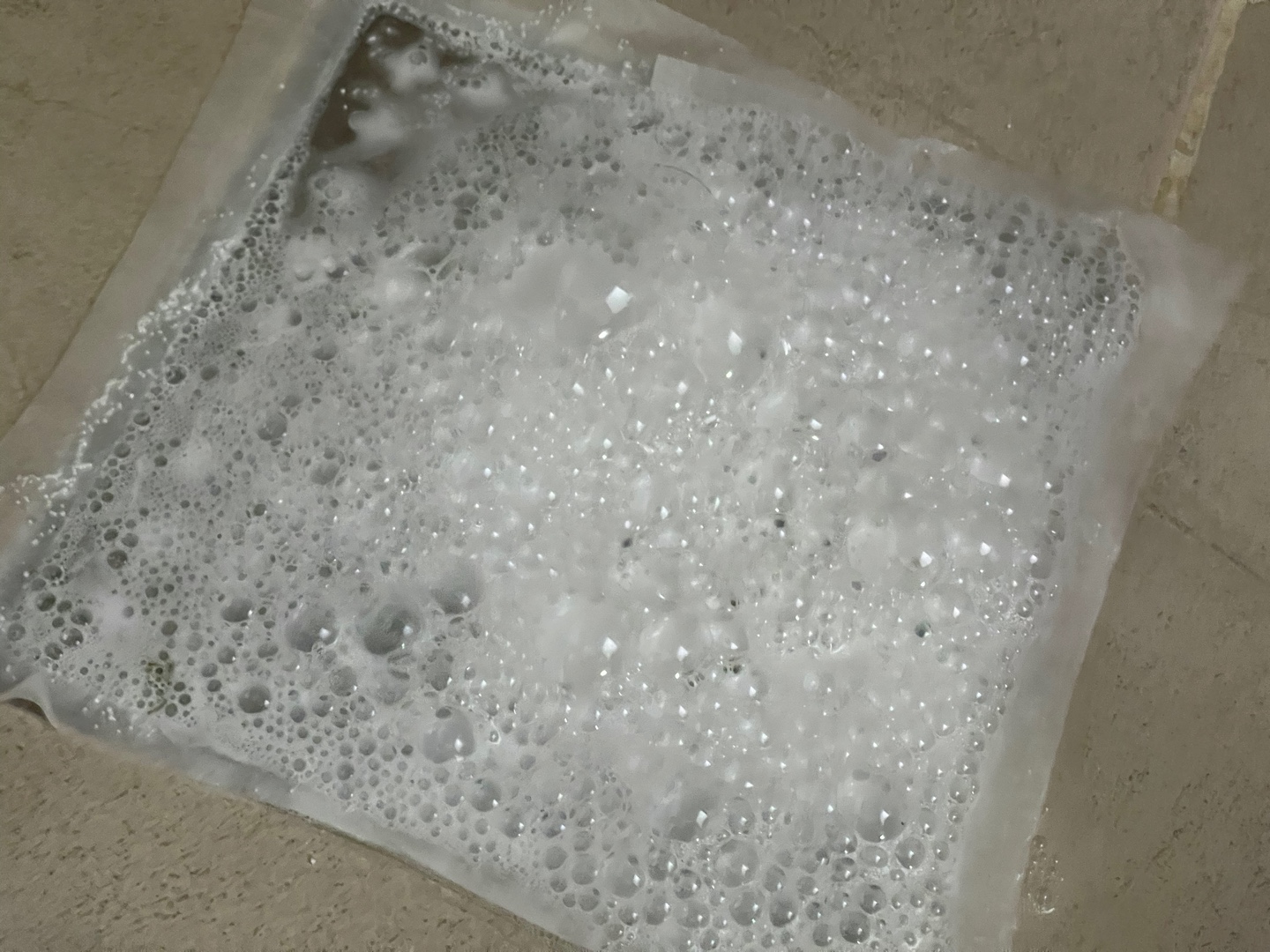 | 과탄산이 씻겨내려가지 않게 물티슈를 잘 고정