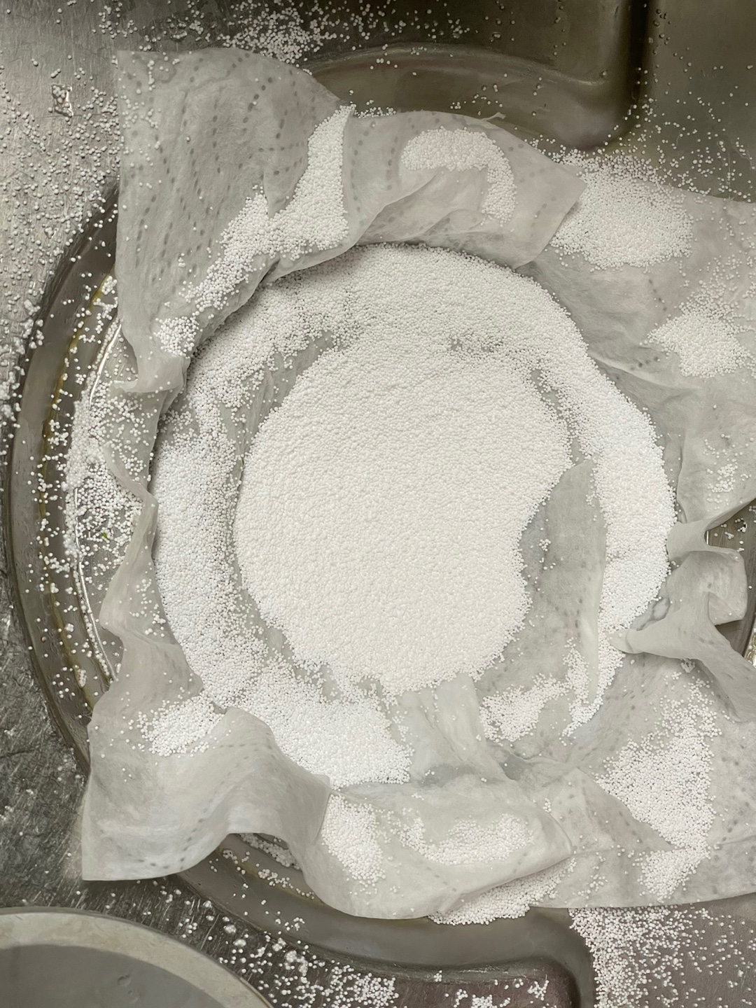 1. 물티슈 딱 고정해서 그위에 과탄산소다 알갱이 새어나가지 못하게 잘 막아주시구요