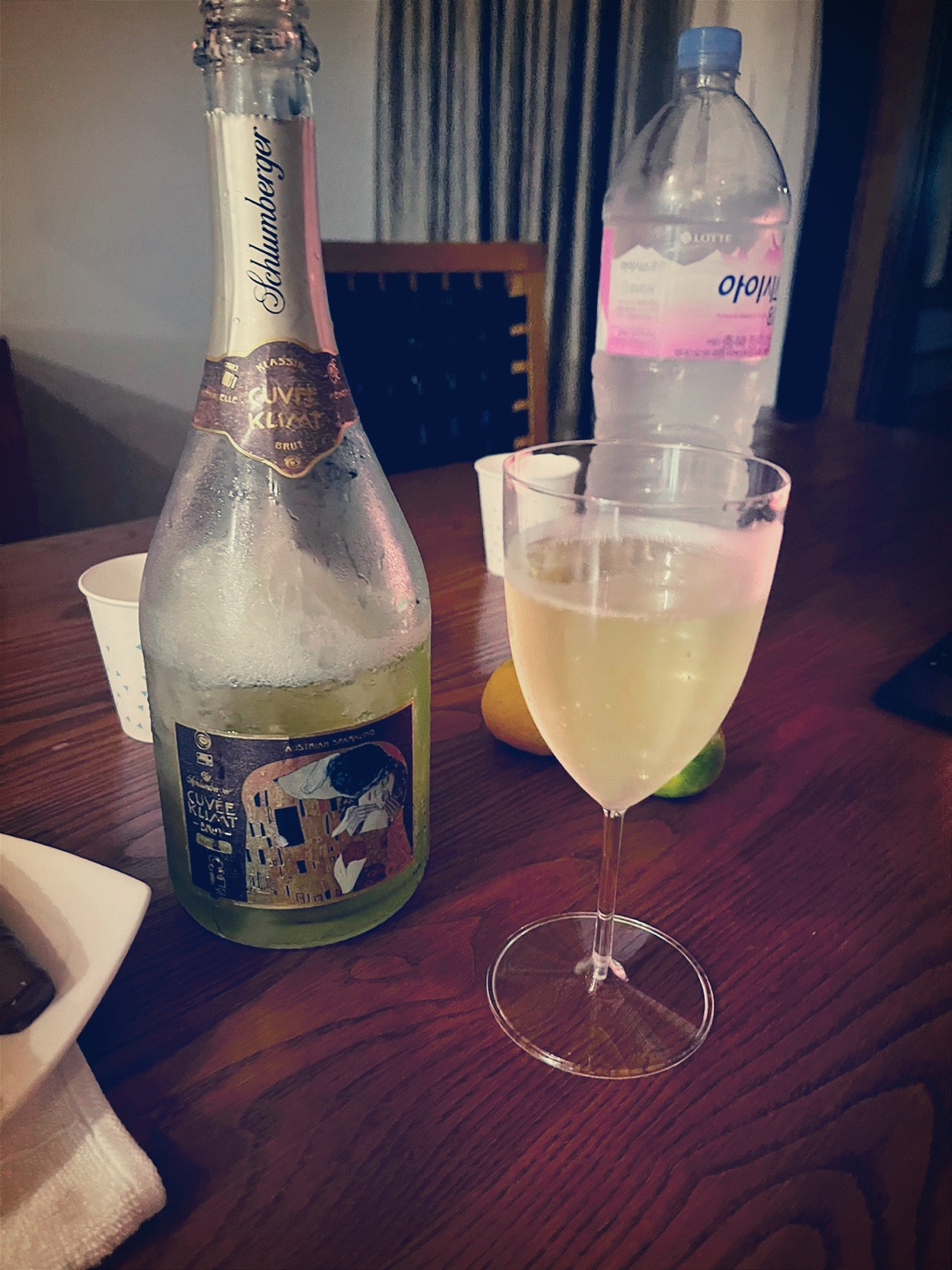 친구와 오랜만에 한잔하기 위해서 선택했던, 일단 병이 이쁘고 저렴해보이지 않았으며 색상또한 분위기를 더했던 스파클링와인. 오스트리아 스파클링와인이며, 젝트 등급으로는 Klassik 등급으로 (클래식 Klassik 기본급젝트: 단일지방 포도 사용. 효모와 최소 9개월 이상 숙성.) 18개월간 효모와 숙성한 와인이라고 합니다. (탄산가스 이산화황 함유 와인임은 표기되어있었습니다. 클래식 등급은 생산방식은 전통방식으로 제한하지 않습니다.) 면세점에서는 선물용 박스패키지 또한 클림트의 키스 그림이 있어서 더 고급스러워보였는데 편의점에는 그 박스는 없는것 같았으며 저또한 바로 마실거라 선물용 상자는 필요가 없었기에 다행. 하지만 잔은 필요해서 GS25에서 구매했습니다. 플라스틱잔이라서 2개들이 2800원이었지만 괜찮았습니다. 당도는 Brut였기에 무스카토 다스티같은 당도는 없지만 제가 스파클링이 강한것을 좋아하기에 또 미세한 기포가 풍부한것 또한 마음에 들었습니다. 당도야 제가 준비한 초콜릿과 과일이 있어서 괜찮았고, 알코올 도수는 12%로 좀 쎈편이라 여자 성인 2명이서 반병씩먹고 , 주량 맥주 500cc인 저는 다음날 머리가 아팠습니다. 재구입의사는 있습니다. 마음에 들었으며 결혼식 답례품으로 받으면 저는 정말 좋겠다는 생각 드네요. GS25에서 6월의 행사와인으로 5만원인데 35000원에 행사를 했다는데 10월에 구매했는데 어떻게 35000원에 구매를 한것이 운이 좋았네요. 팝카드로 구매시 20% 페이백 행사도 있었다는데 그런 카드 없고, 하하 늘 샴페인이 최고다 했는데 오스트리아 젝트의 경험~! 좋았습니다. 젝트 등급도 알게 되었으니, 더 좋은 오스트리아 젝트도 도전해보고 싶다는 생각이 들정도로 만족도 높았던 클림트키스와인 선물용으로 손색없습니다. 그리고 크리스마스에 이거한병 올려놓고 분위기 내면 참 좋겠다 싶습니다. CUVEE KLIMT